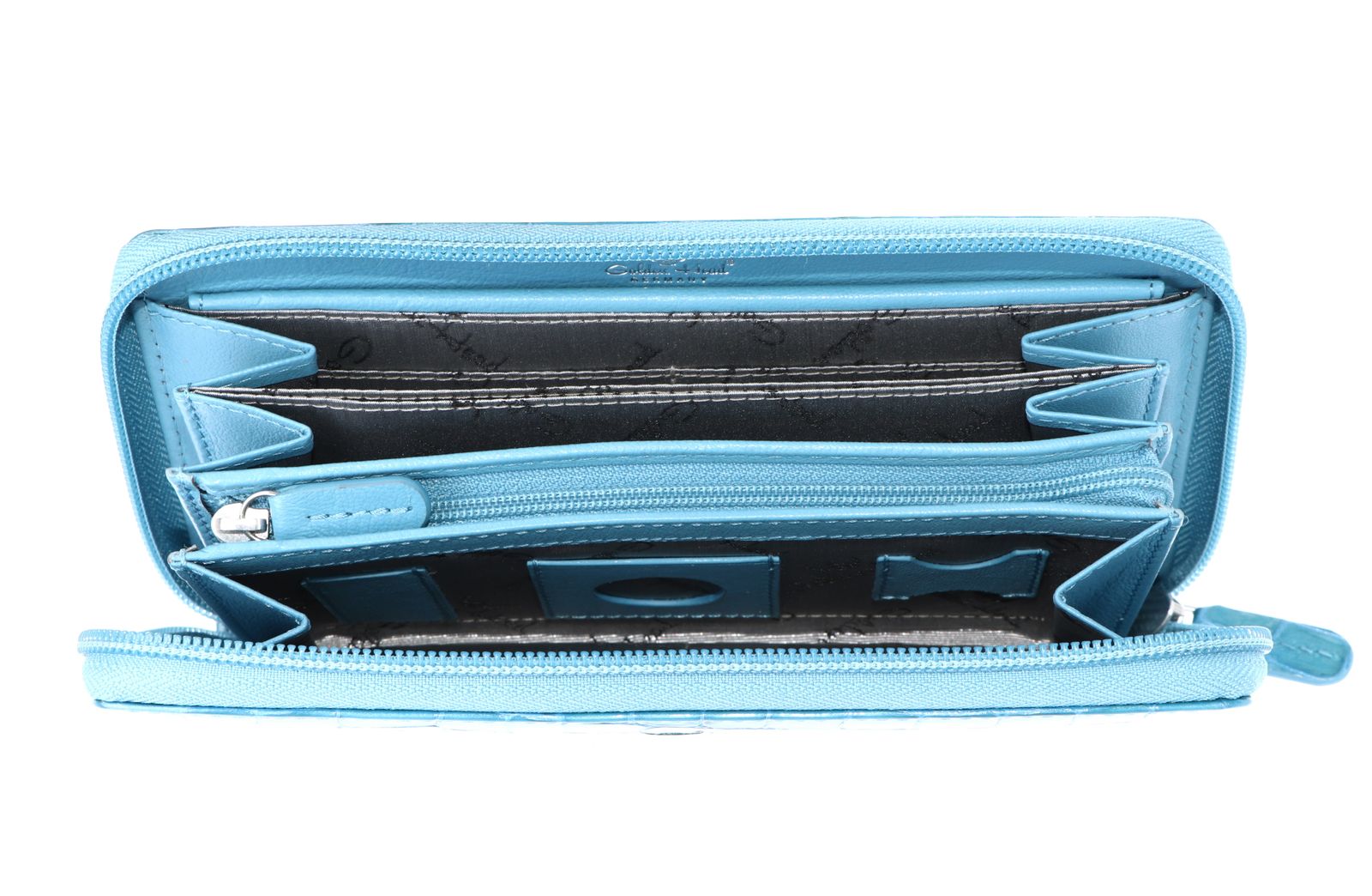 - Geldbörse wird mit Zipper geschlossen