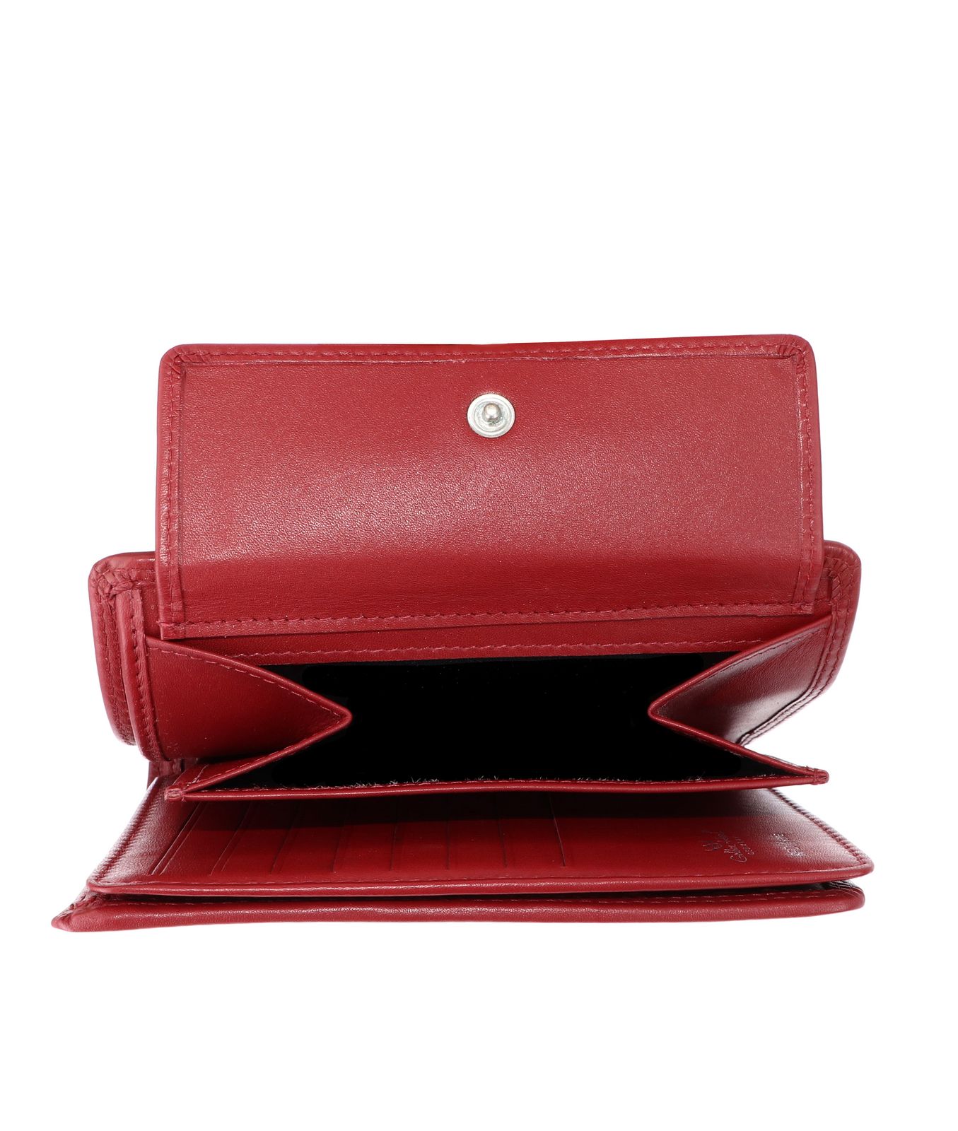 - Geldbörse wird mit Lasche und Druckknopf geschlossen
