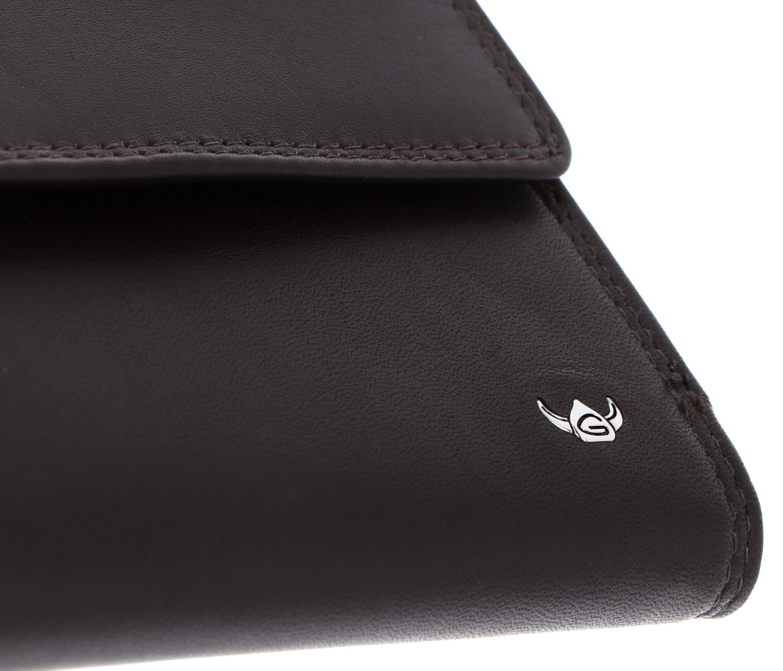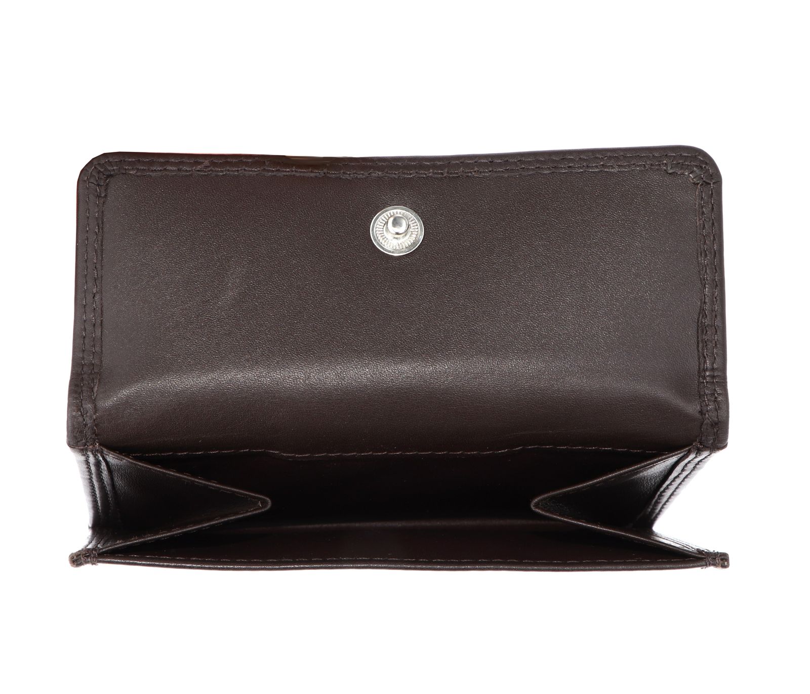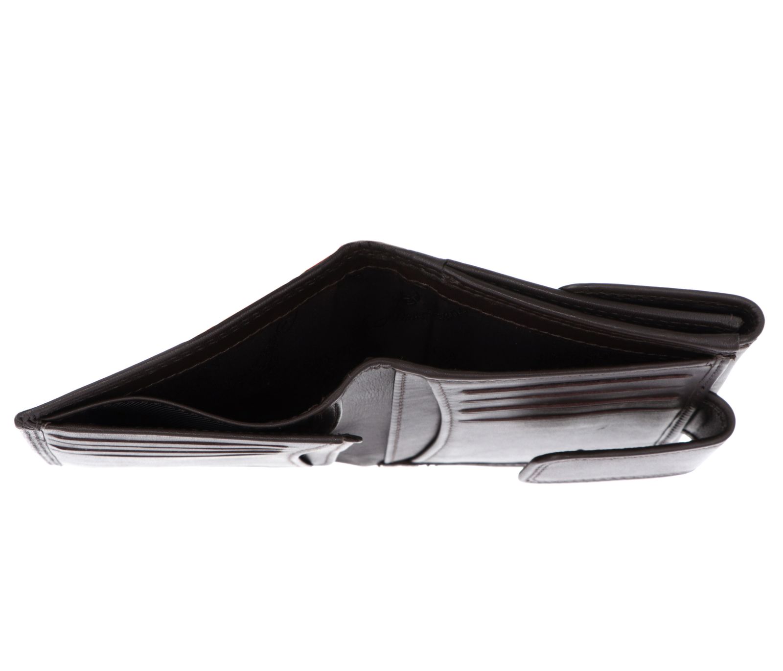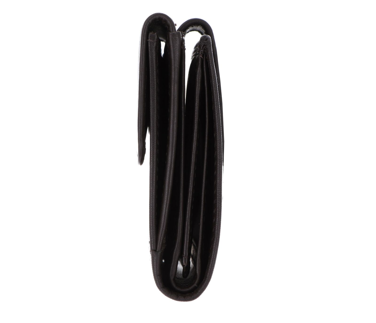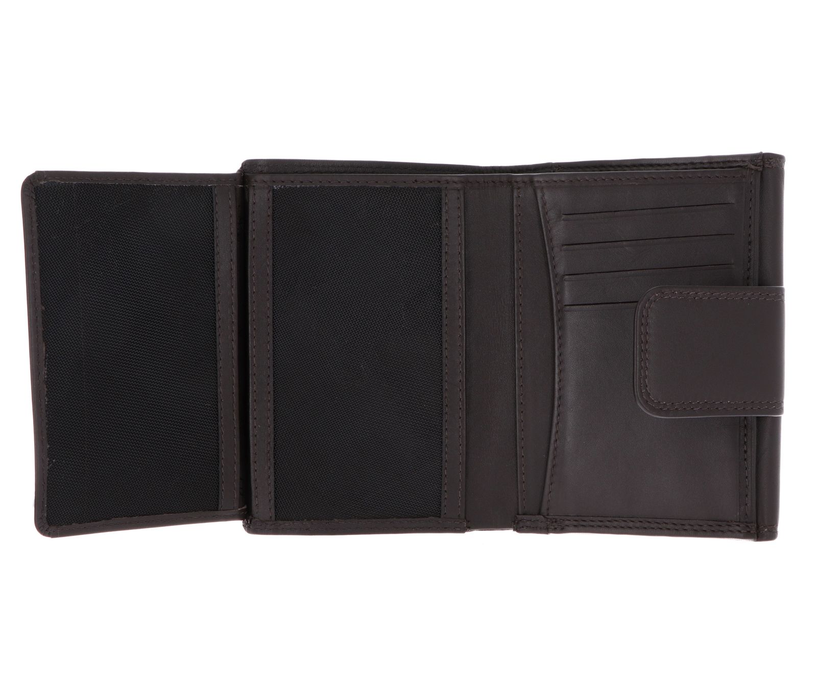- Geldbörse wird mit Lasche und Druckknopf geschlossen