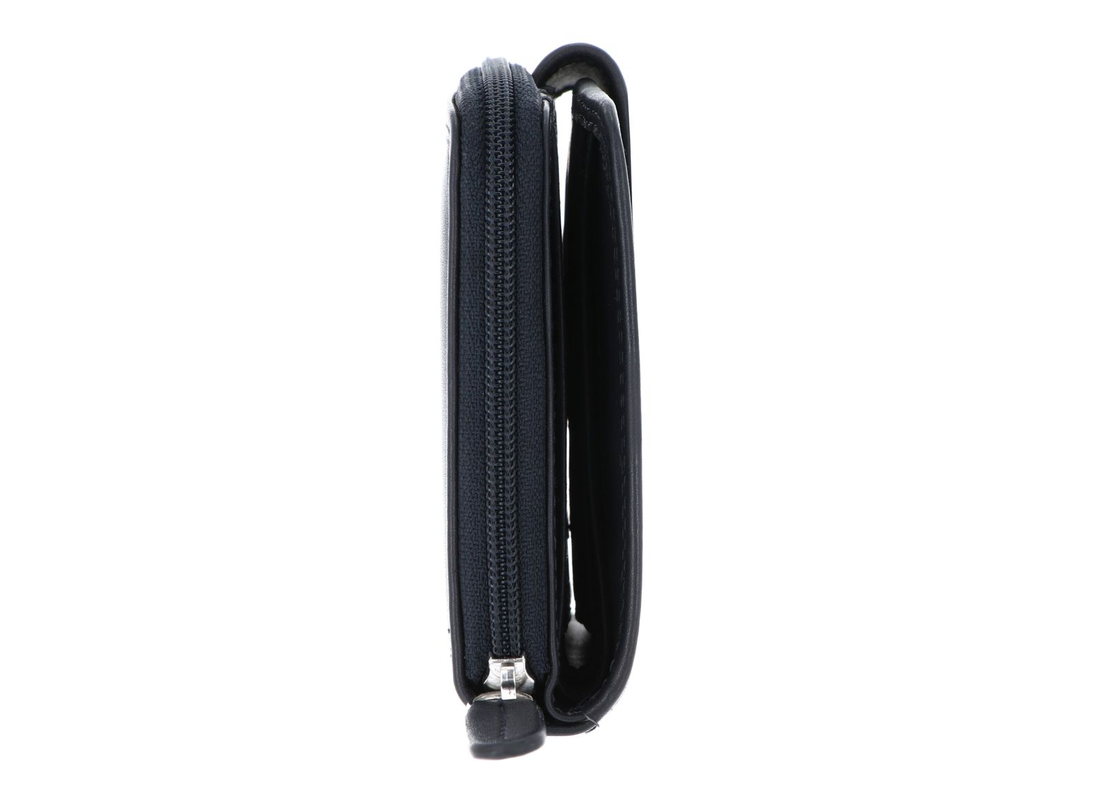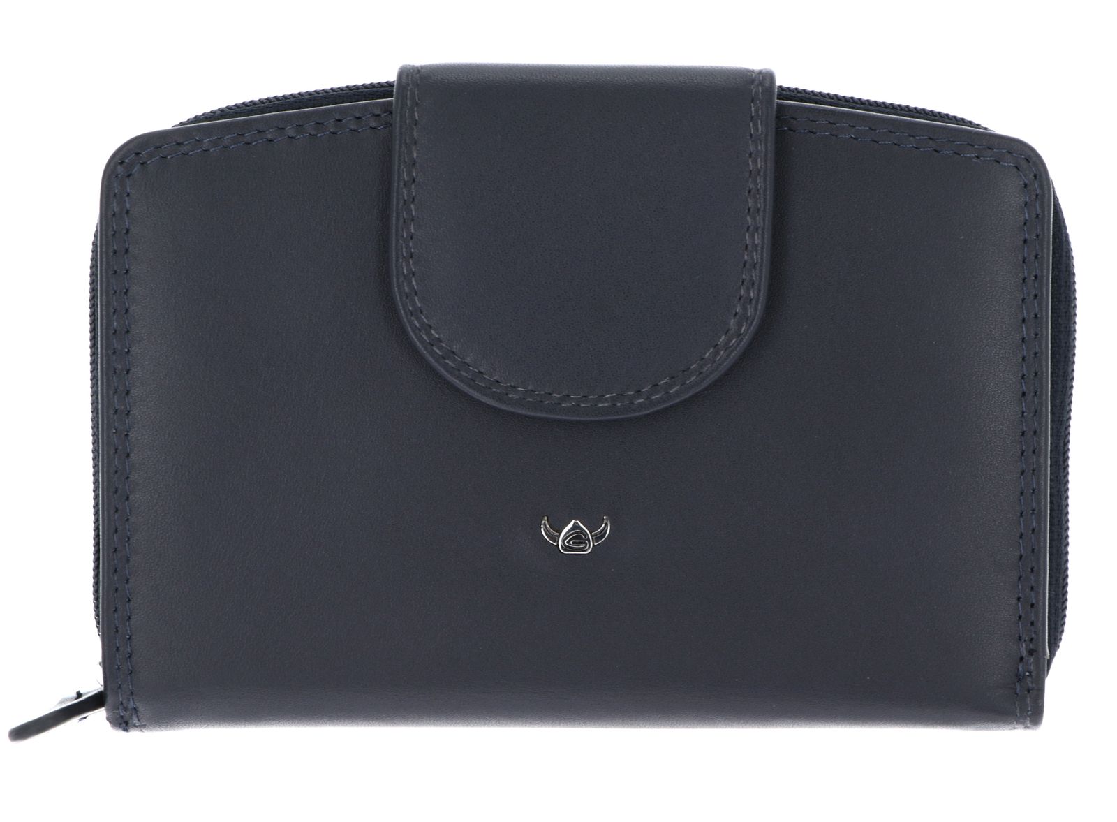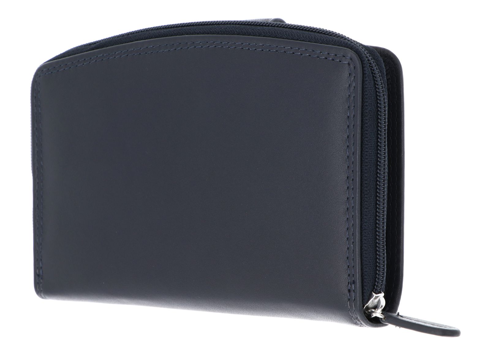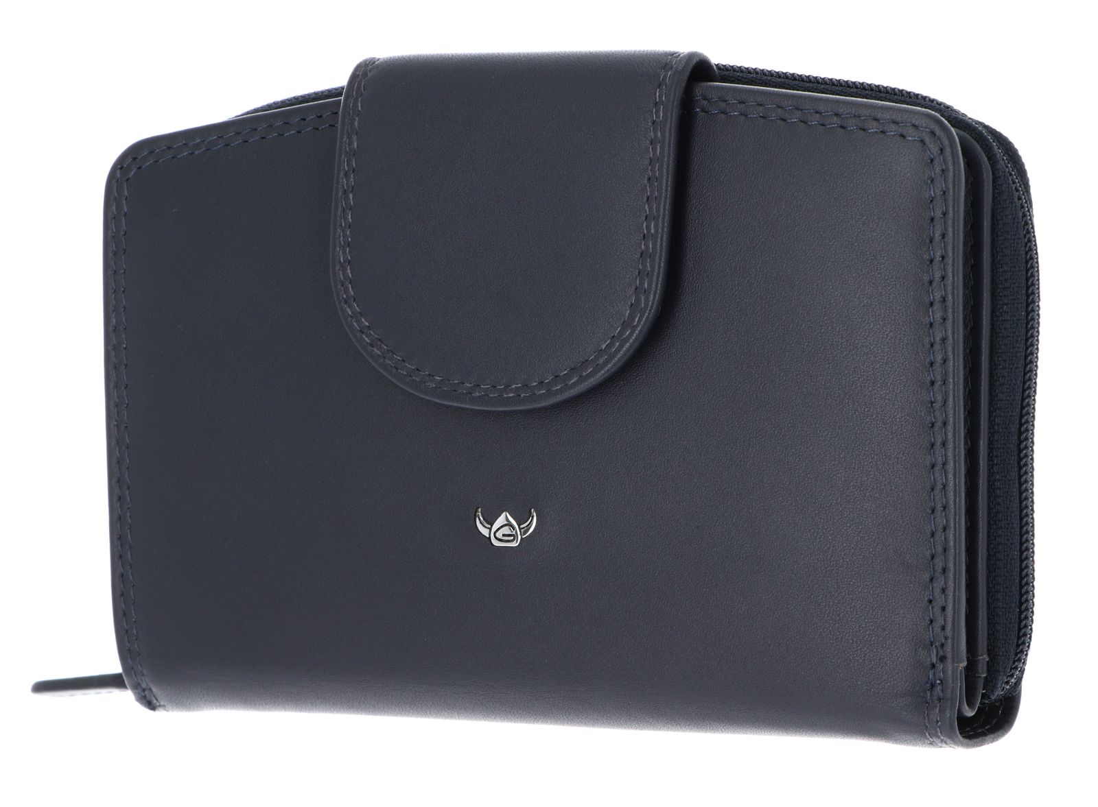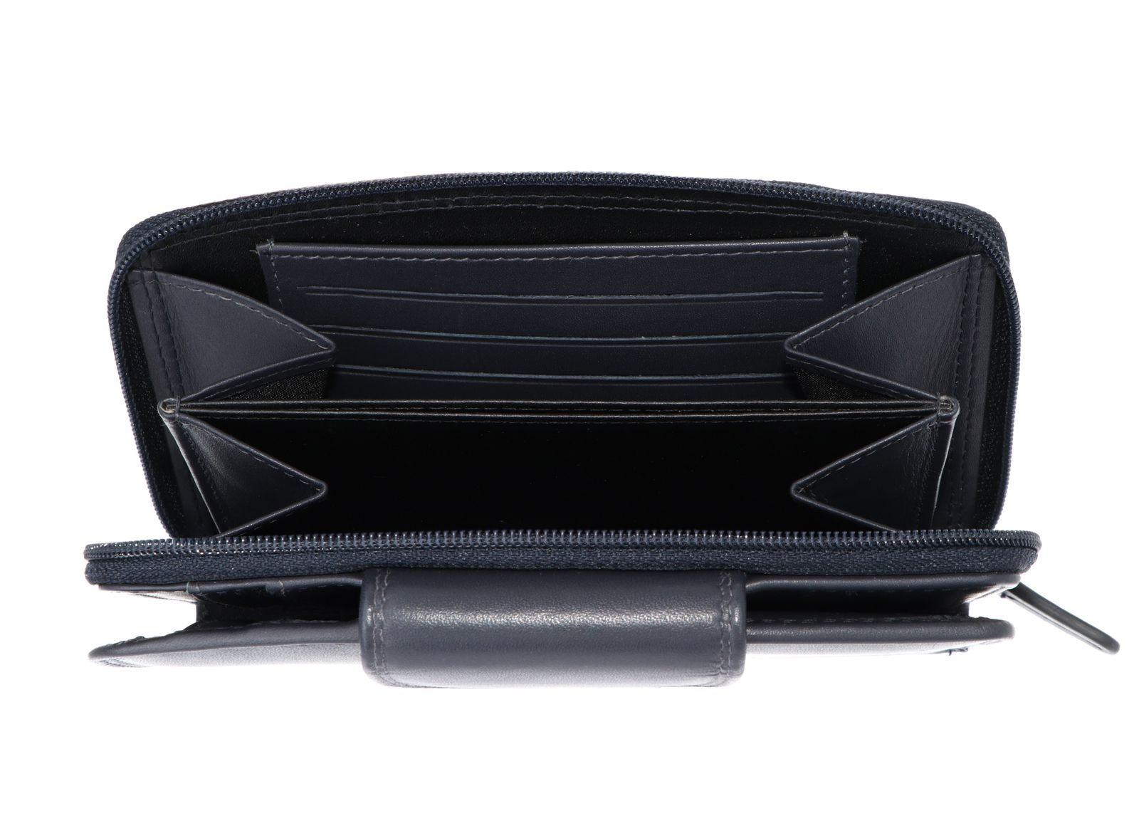 - Geldbörse wird mit Zipper, Lasche und Druckknopf geschlossen