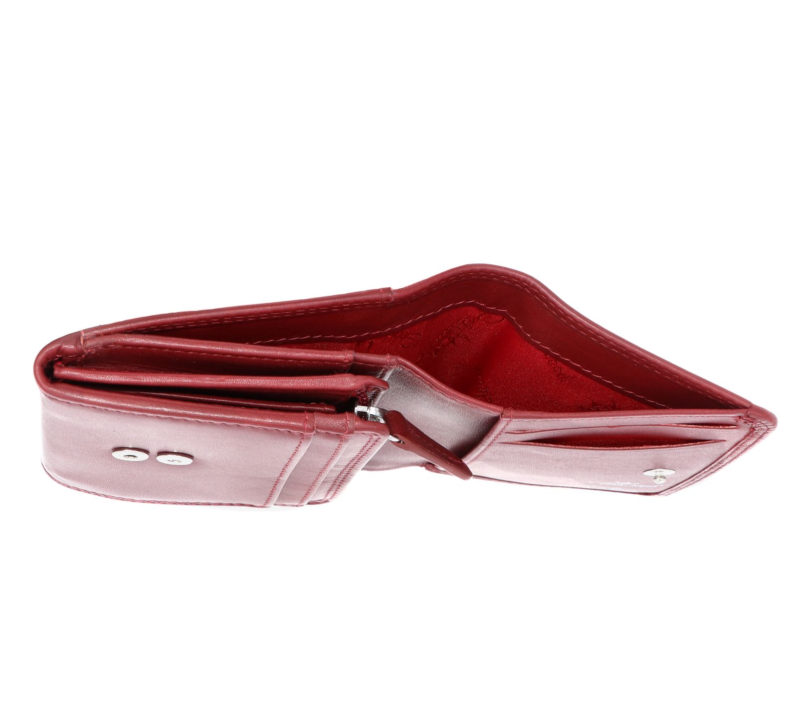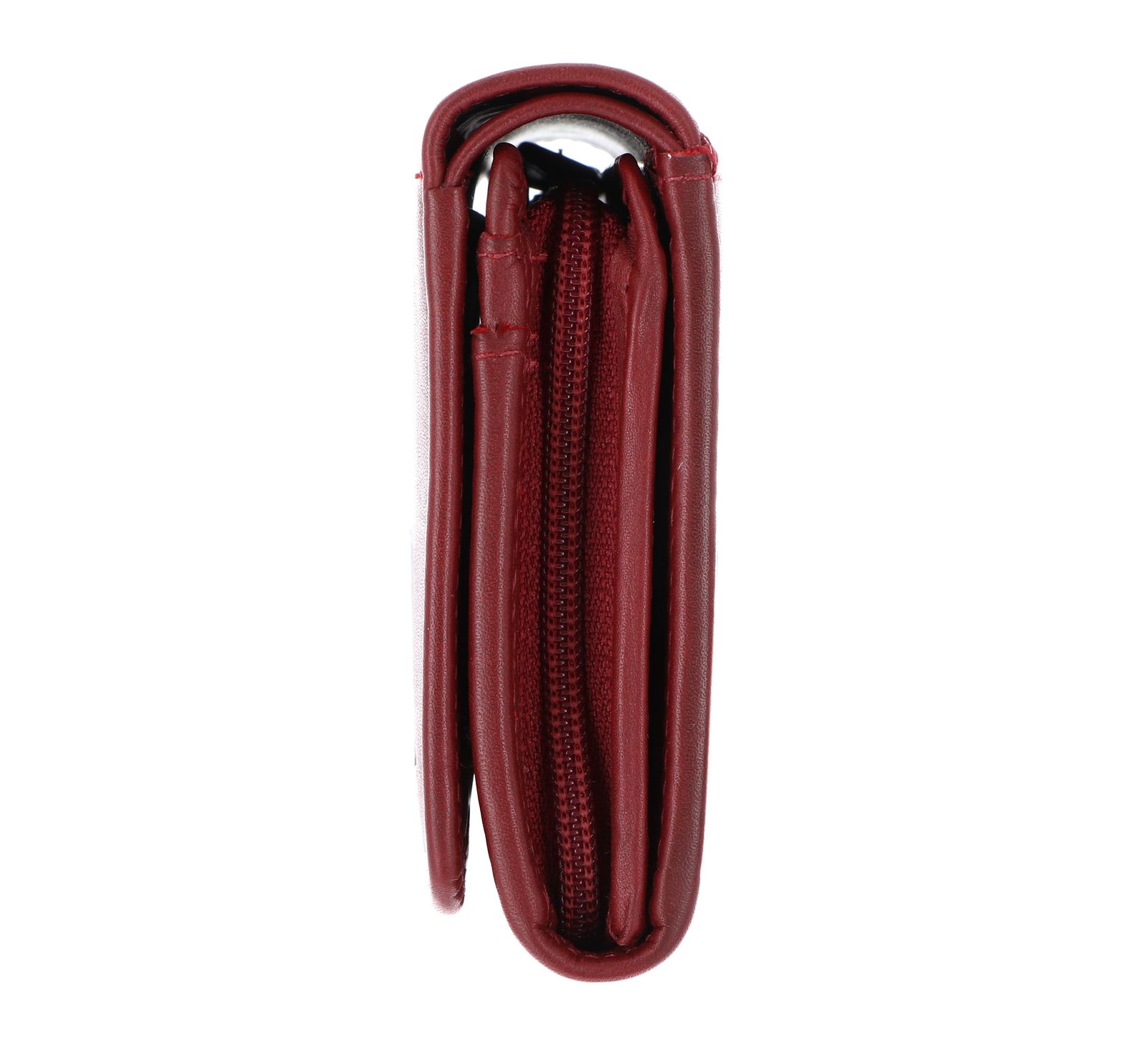 - Geldbörse wird mit Überschlagklappe und Druckknopf geschlossen
