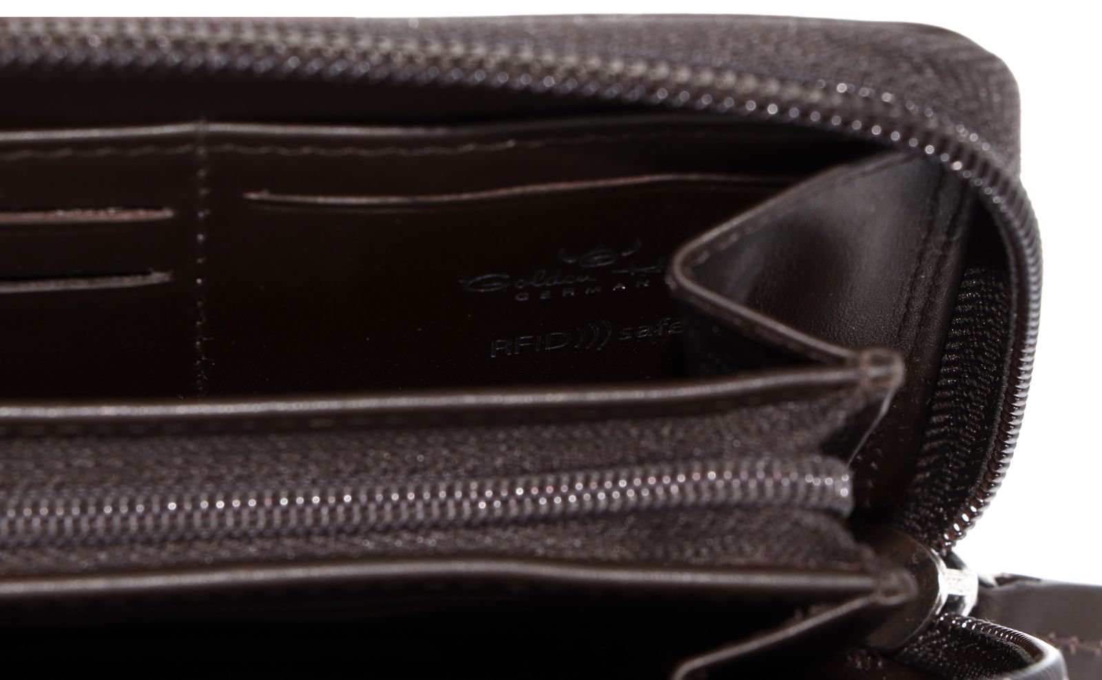 - Geldbörse wird mit Zipper geschlossen