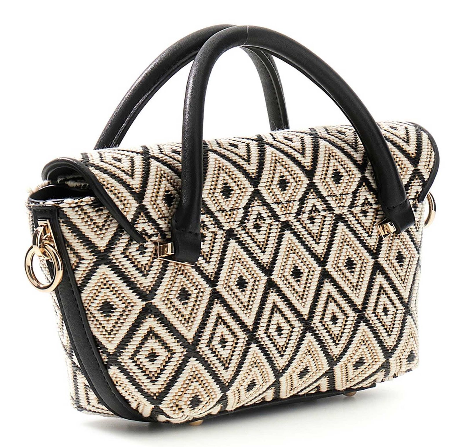- Handtasche wird mit Überschlagklappe und Magnetverschluss geschlossen