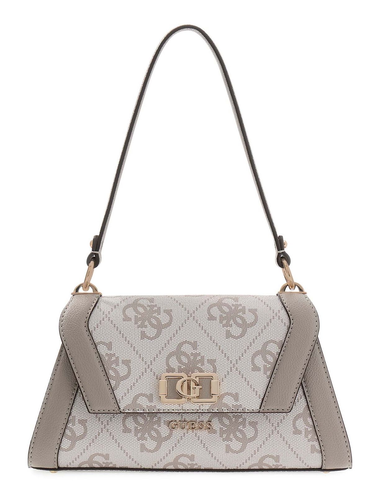 GUESS Karnilla Flap Shoulder Bag Dark Taupe Logo