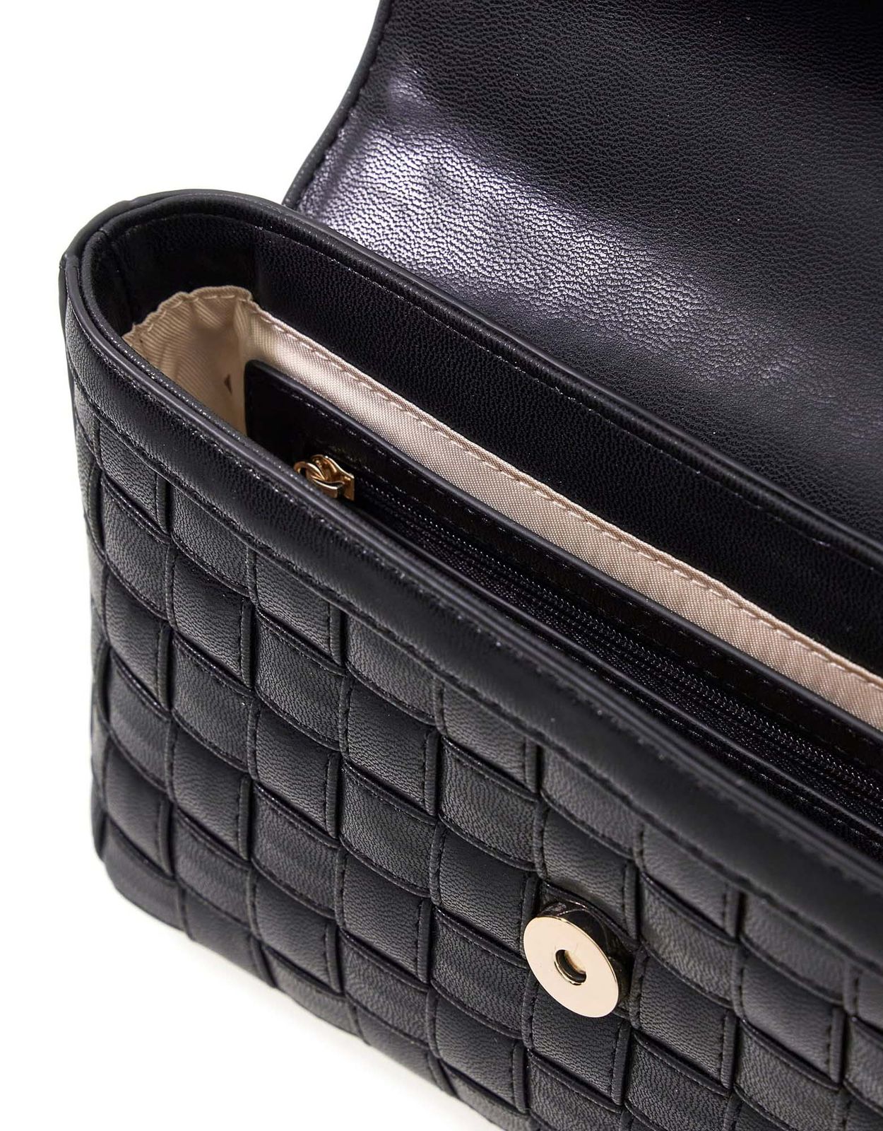 - Schultertasche wird mit Überschlagklappe und Magnetverschluss geschlossen