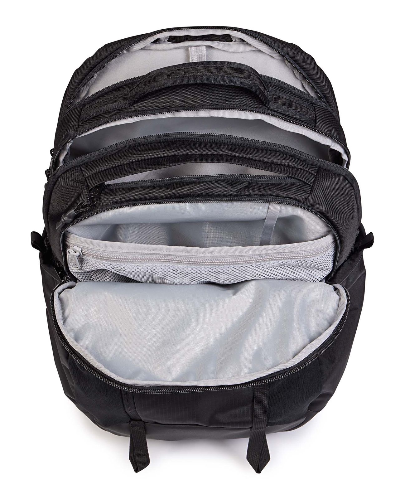 - Im hinteren Hauptfach 1 gepolstertes Laptopfach und 1 Befestigungsschlaufe mit Klettverschluss