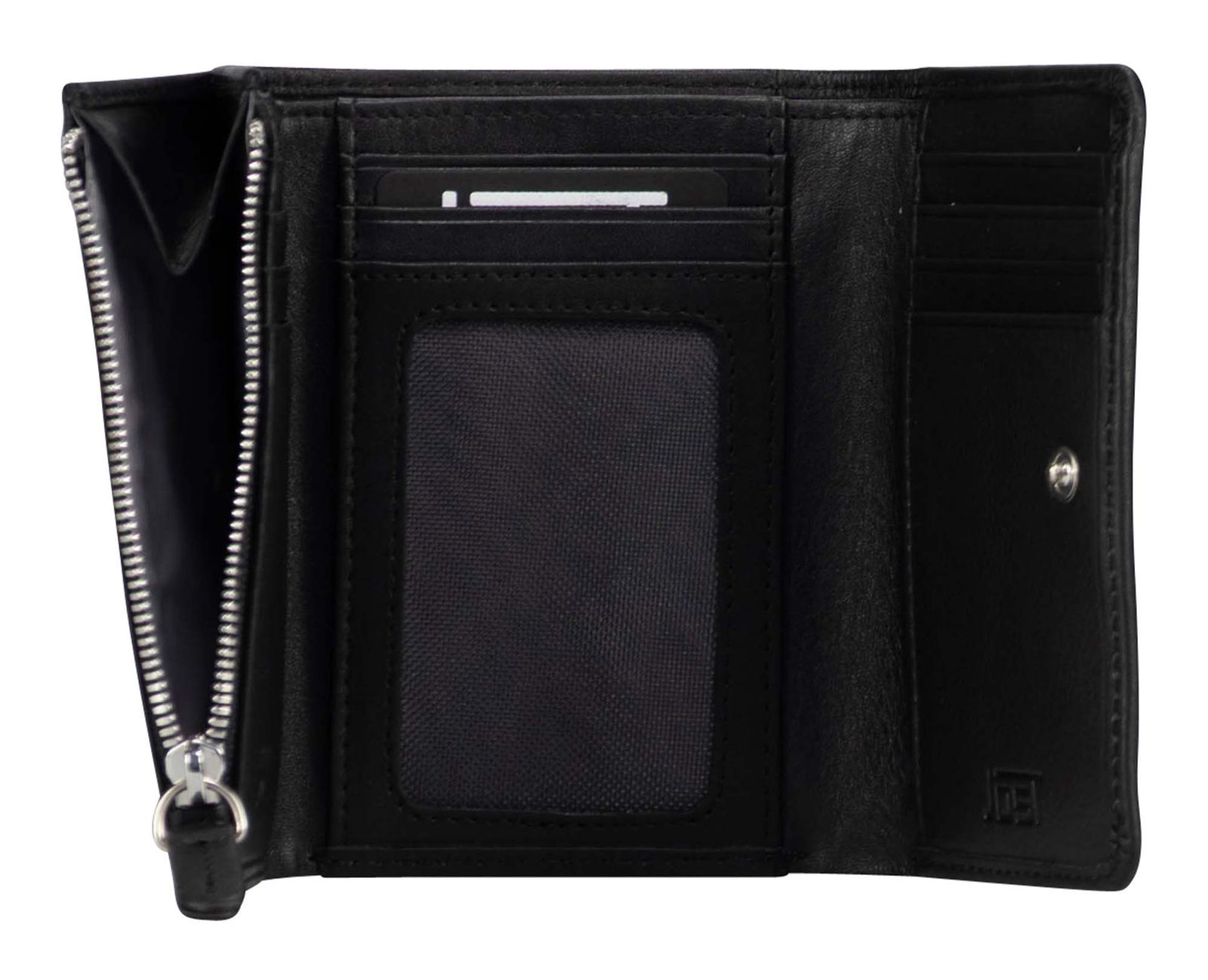 - Geldbörse wird mit Druckknopf und Zipper geschlossen