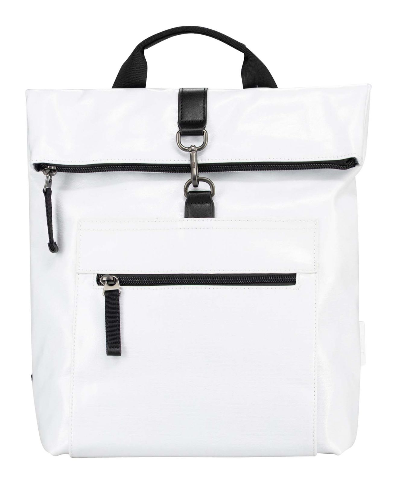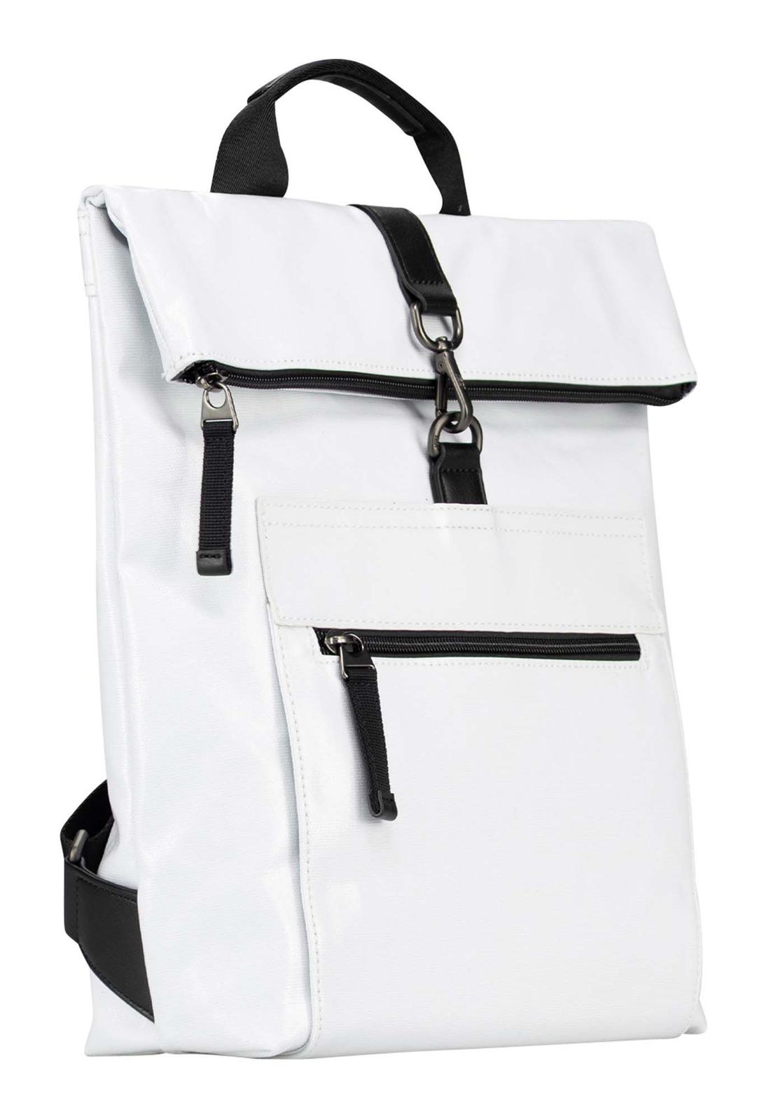 - Rucksack wird mit Zipper, Rollverschluss und Karabinerhaken geschlossen