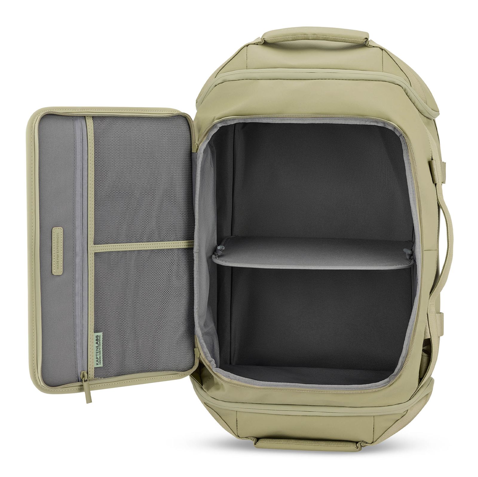 - Im Hauptfach 1 fixierbare Trennwand und 2 Befestigungsschlaufen für Trennwände