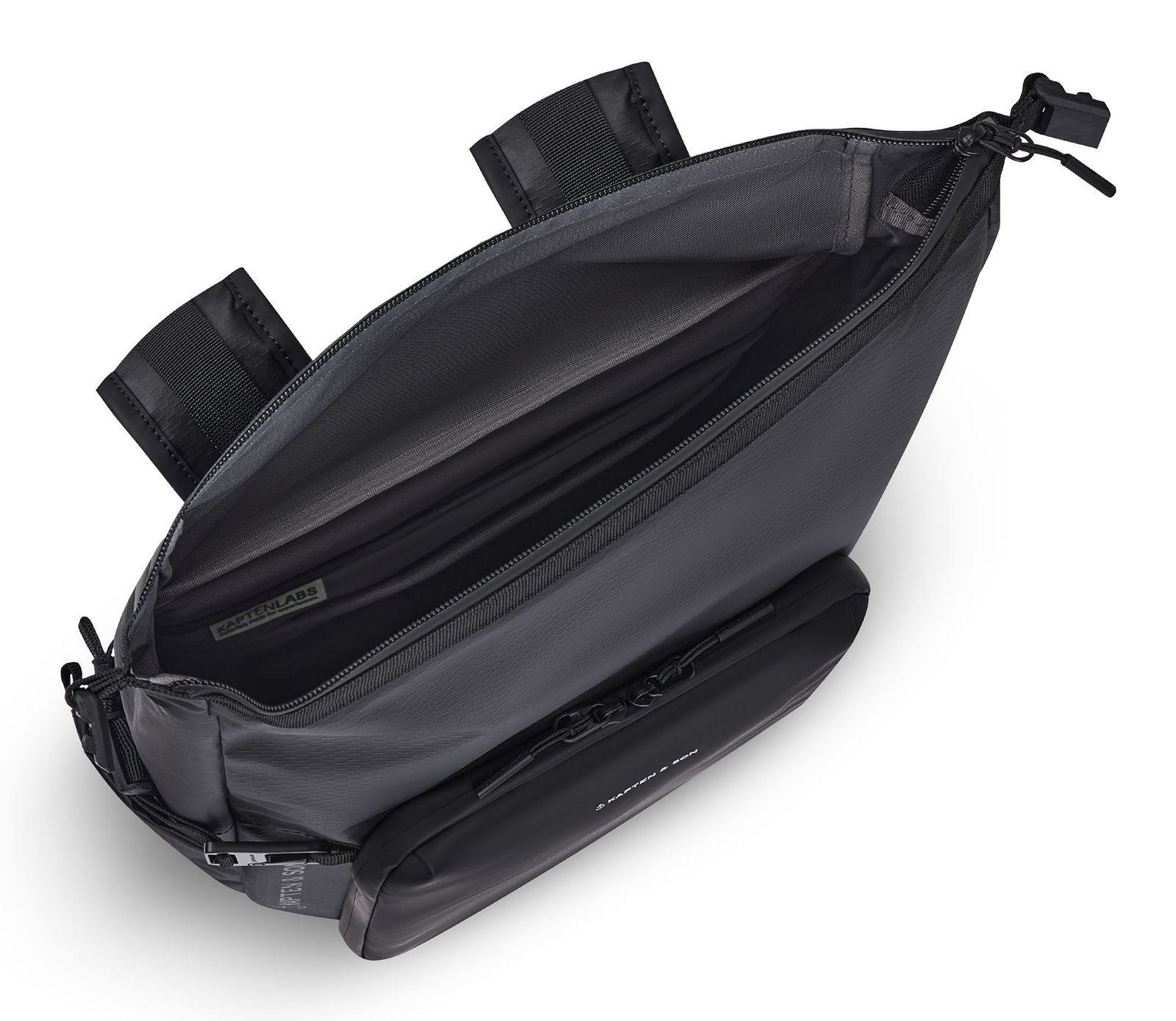 - Rucksack wird mit Zipper, Rollverschluss und stufenlos verstellbarem Magnetverschluss geschlossen