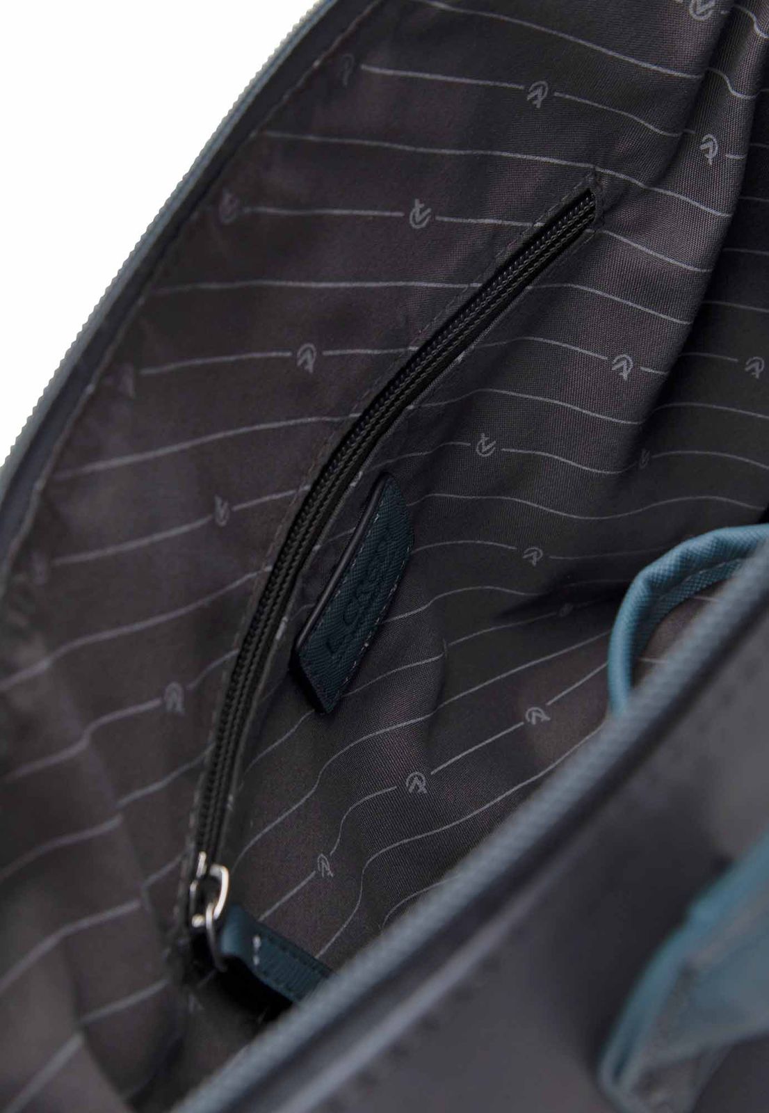 - Handtasche wird mit Zipper geschlossen