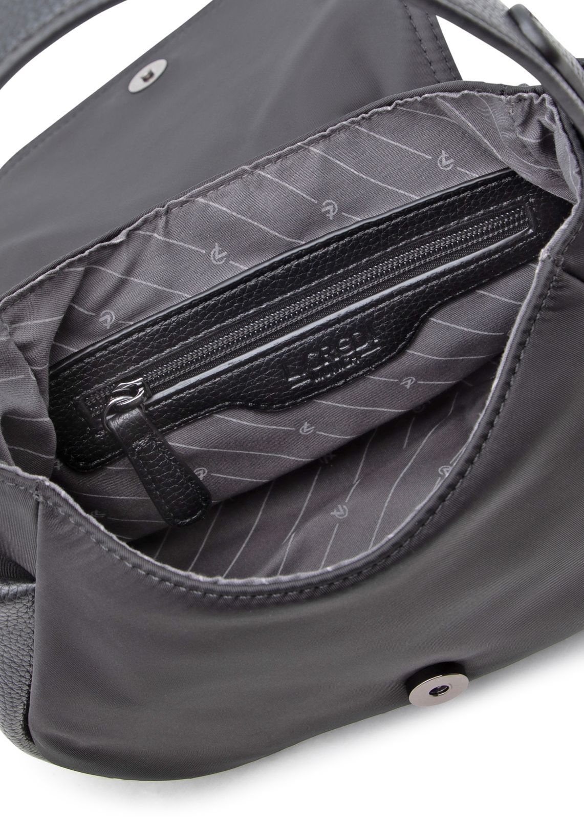- Schultertasche wird mit Überschlagklappe und Magnetverschluss geschlossen