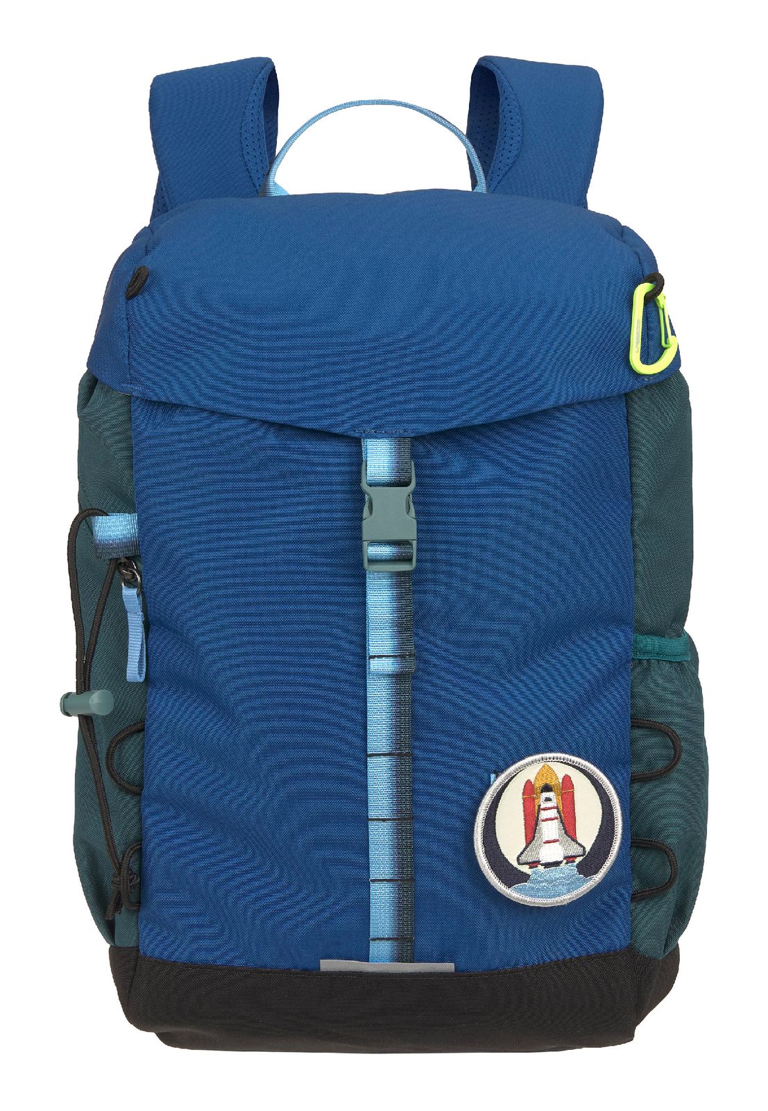 - Rucksack wird mit Zugband, verstellbarem Klettverschluss, Überschlagklappe und Clipverschluss geschlossen