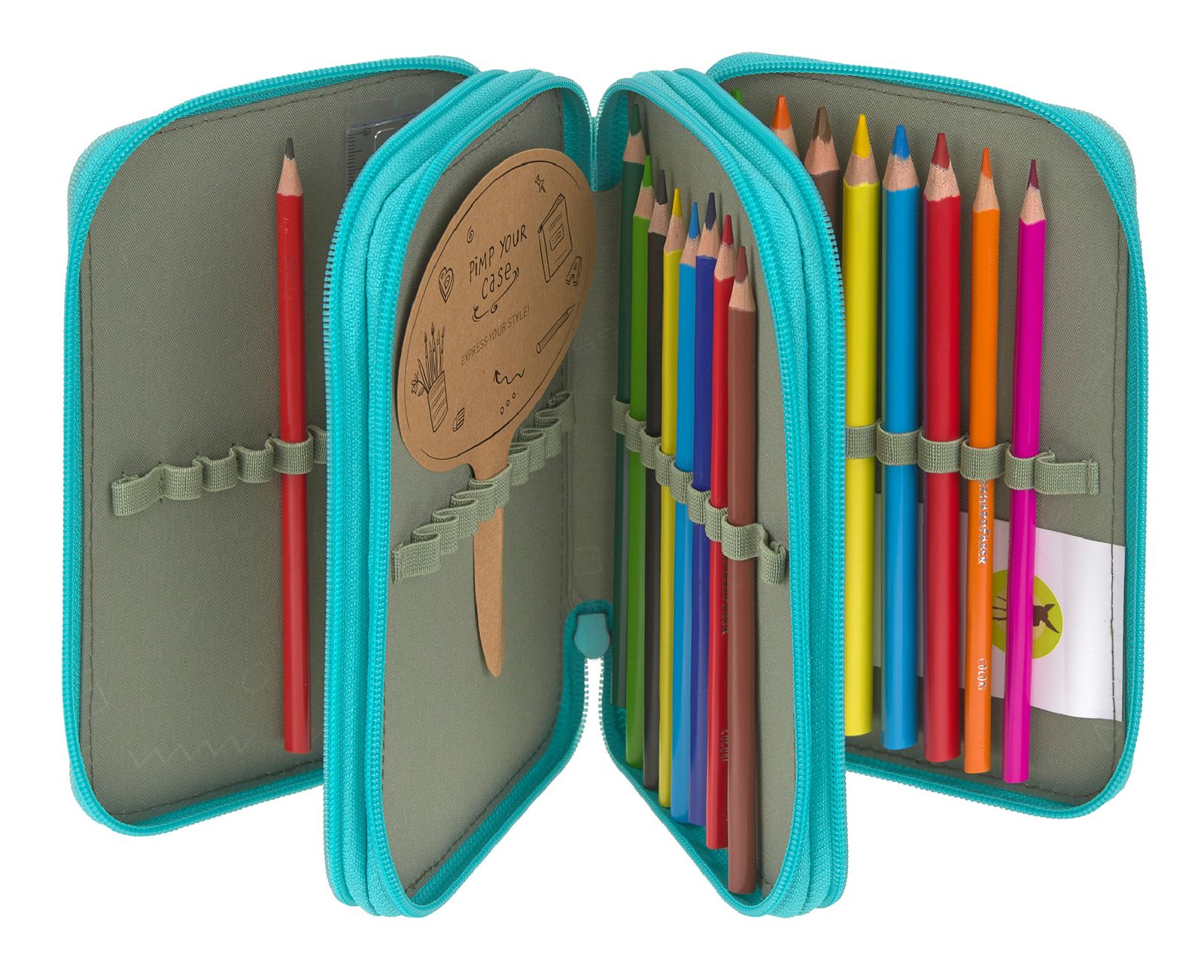 - Lieferumfang: Lässig Federmäppchen mit Etikett, 1 x Bleistift, 16 x Buntstift, 1 x Lineal, 1 x Radiergummi, 1 x Spitzer
