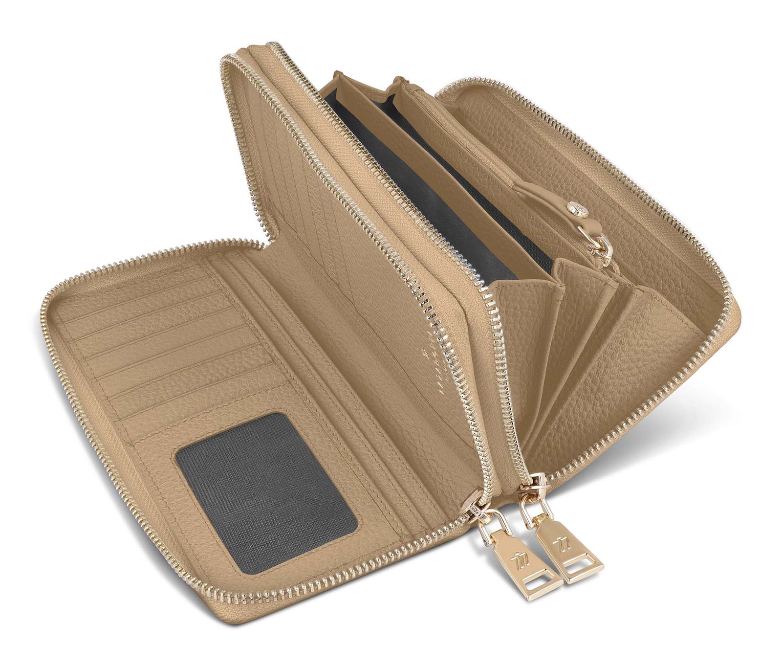 Bologna Leather Double Zip Around Wallet Sand