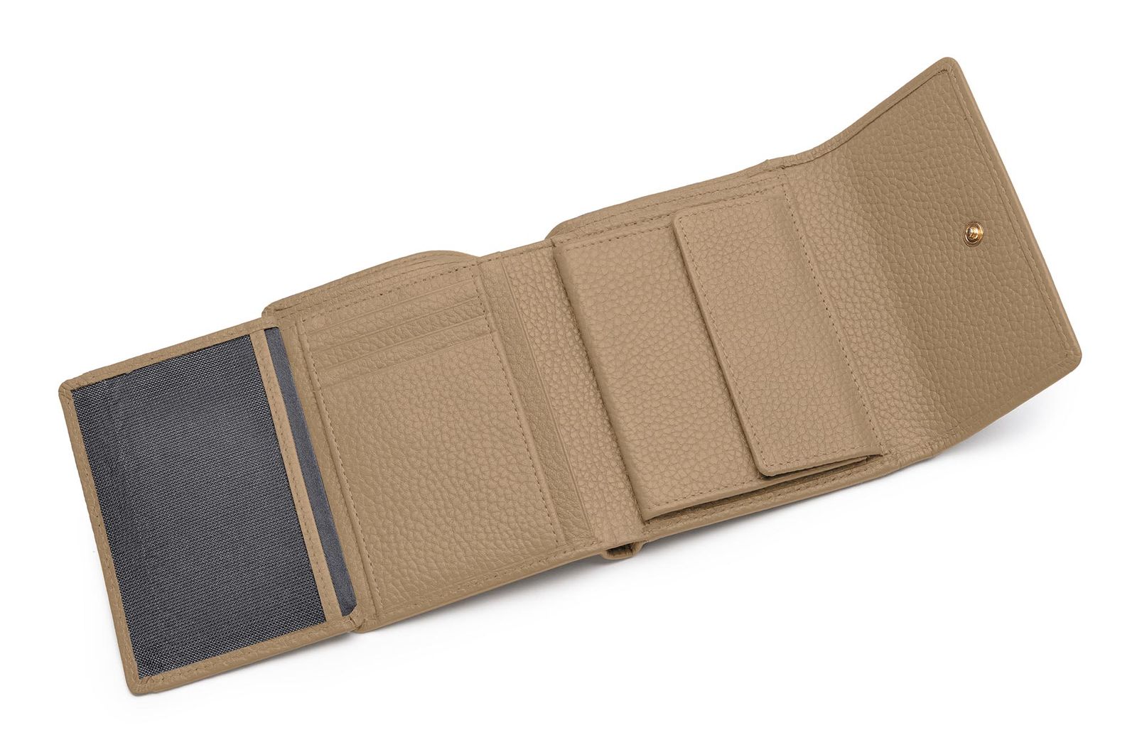 - Geldbörse wird mit Überschlagklappe und verstellbarem Druckknopf geschlossen