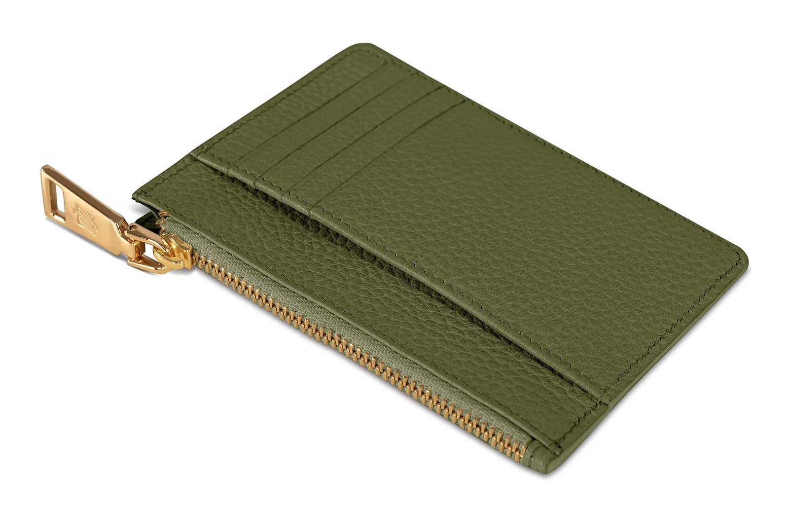 Bologna Leather Zip Etui 4 Card Slots Olive