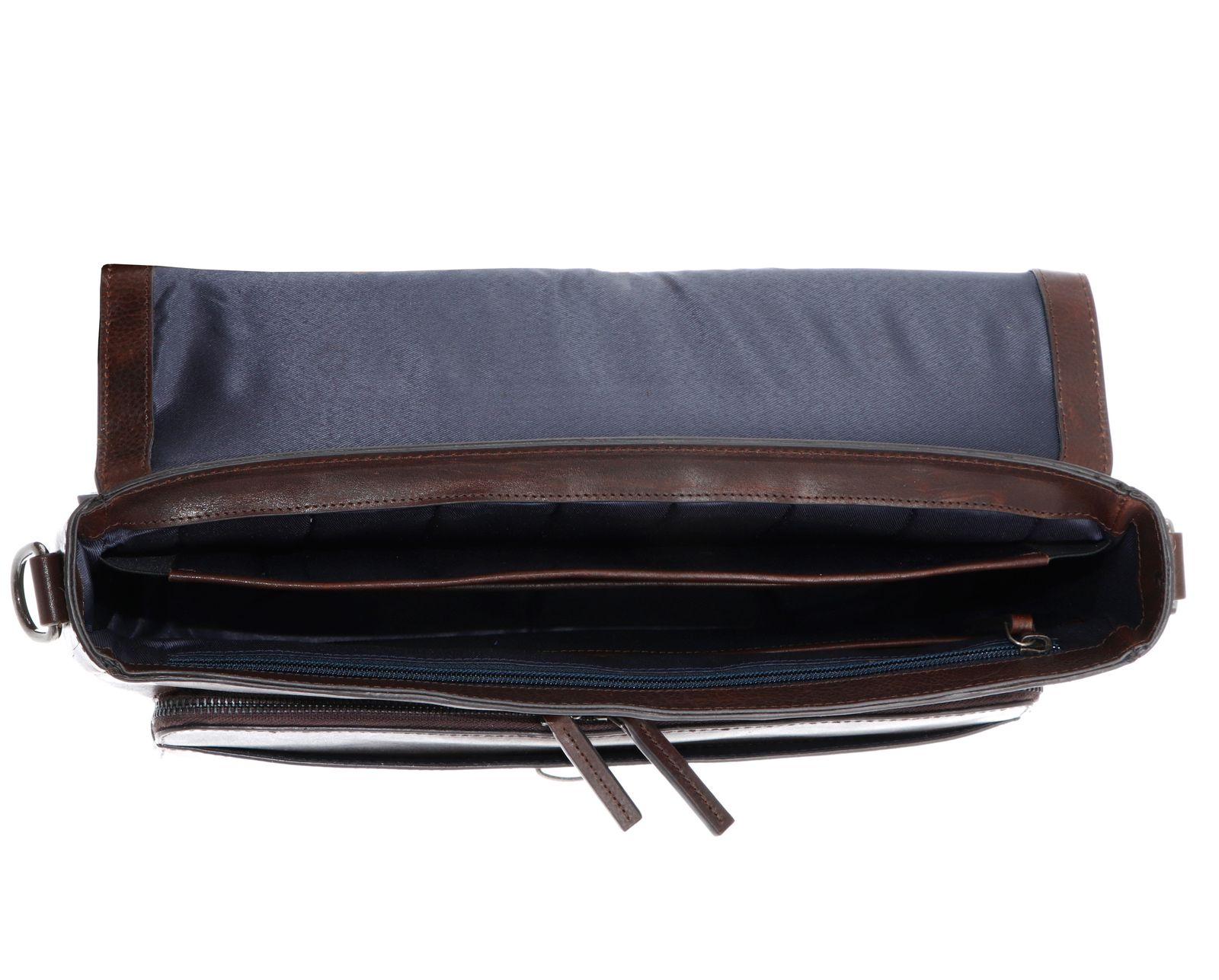 - Aktentasche wird mit Überschlagklappe und Schnappverschluss geschlossen
