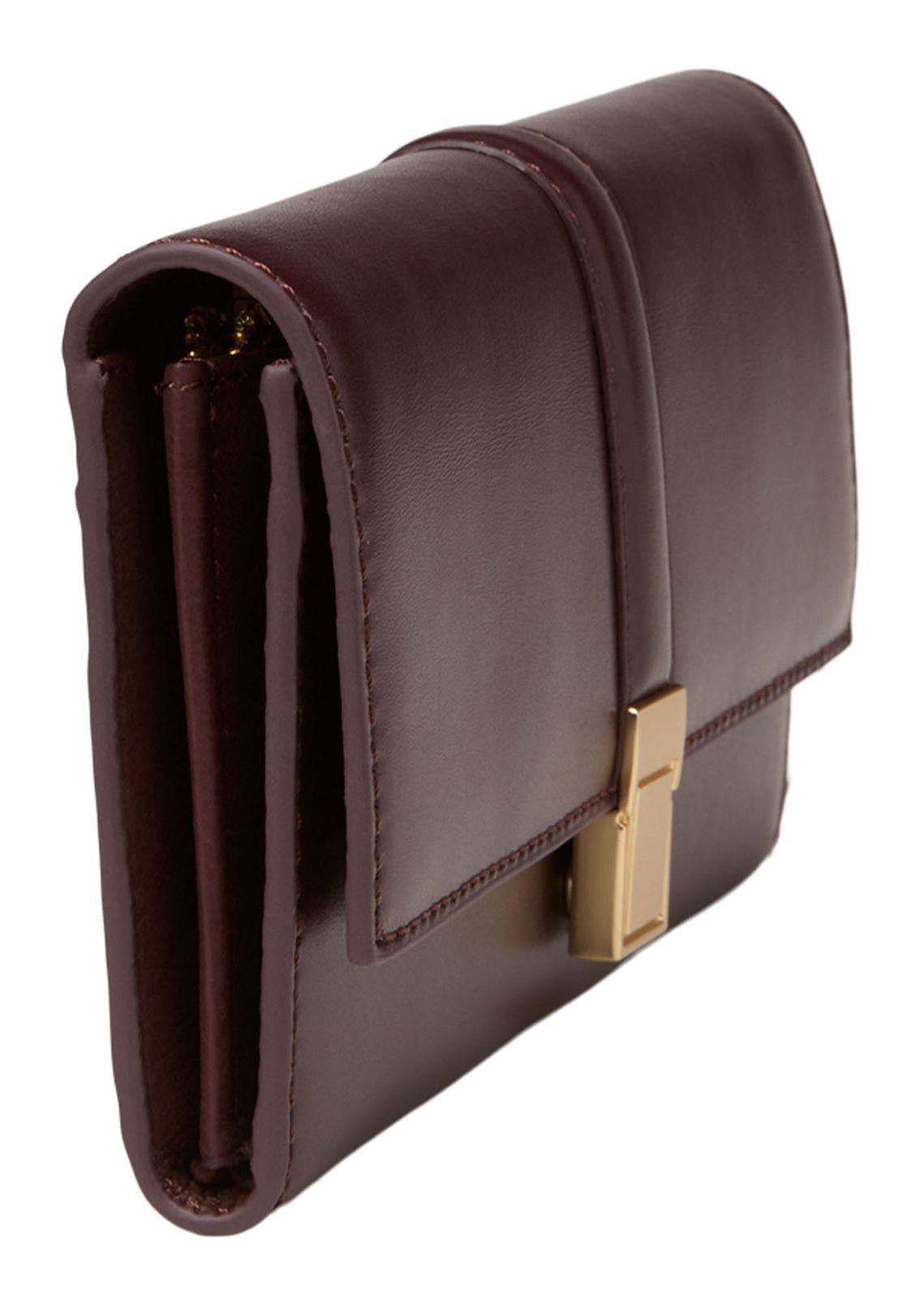 - Geldbörse wird mit Überschlagklappe und Druckknopf geschlossen