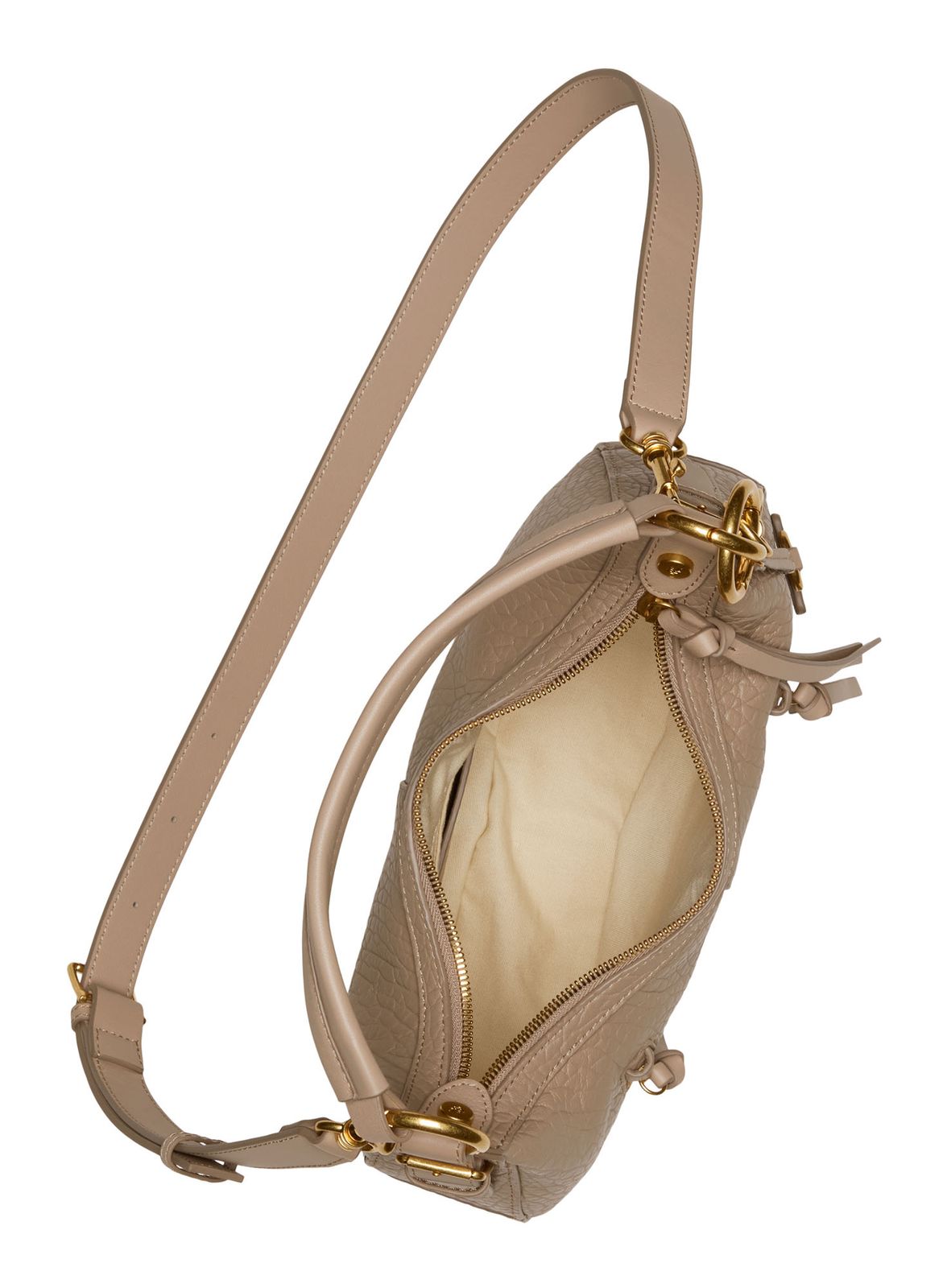 - Schultertasche wird mit Zipper geschlossen