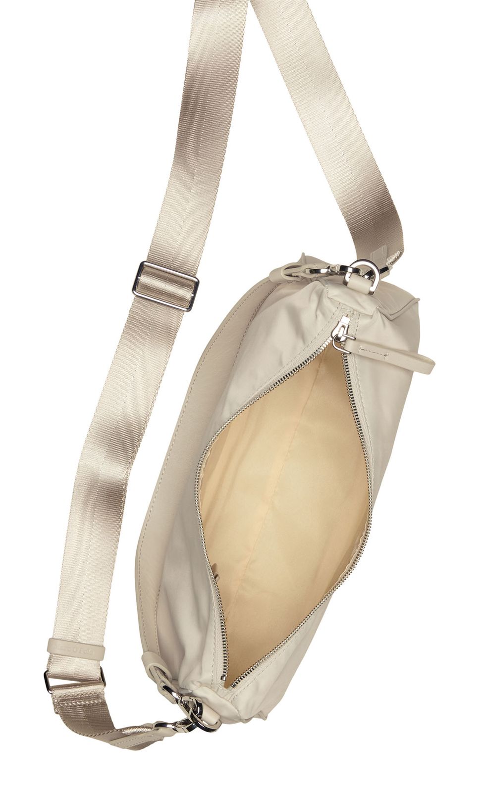- Umhängetasche wird mit Zipper geschlossen
