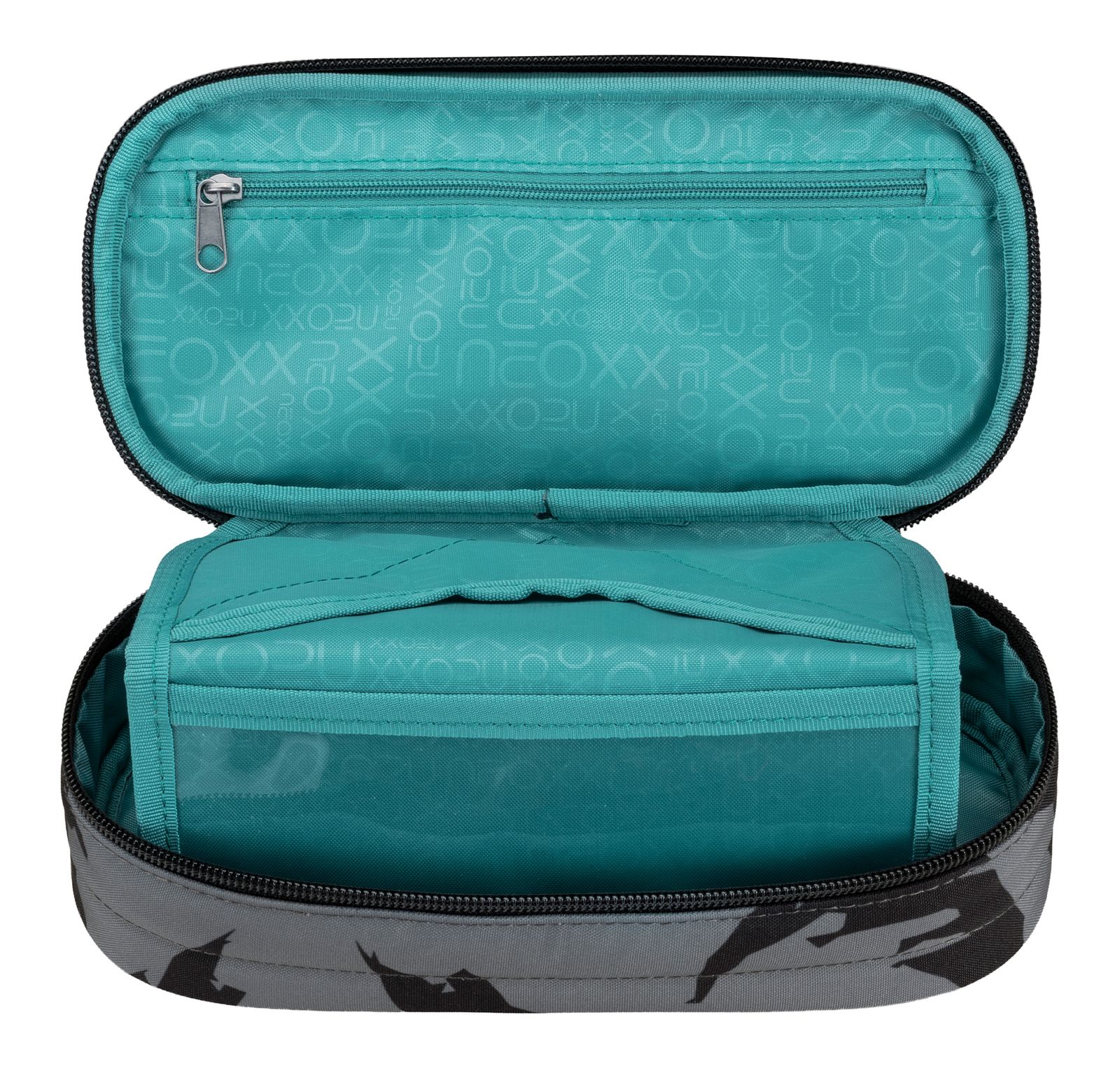 - Schlampermäppchen wird mit Zipper geschlossen