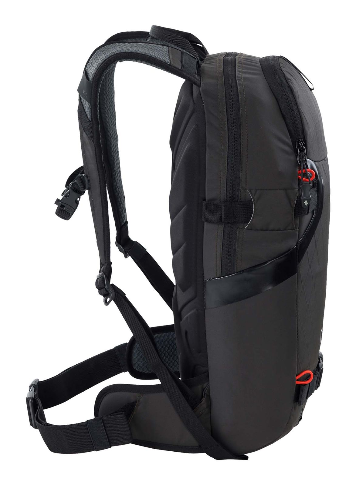 - Mit Befestigungsmöglichkeit an Schultergurt, Ausgang für Trinksysteme, höhenverstellbarem Brustgurt, Signalpfeife an Brustgurtschnalle und gepolsterten Beckenflossen ausgestattet