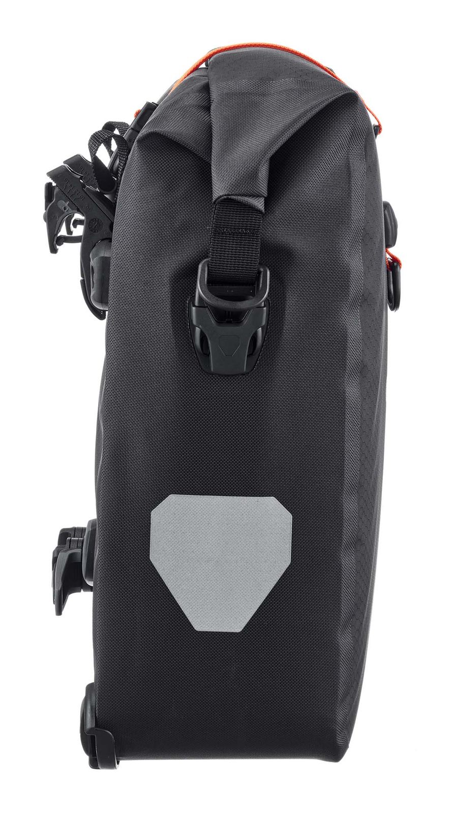 - Fahrradtasche wird mit Rollverschluss und stufenlos verstellbarem Clipverschluss geschlossen