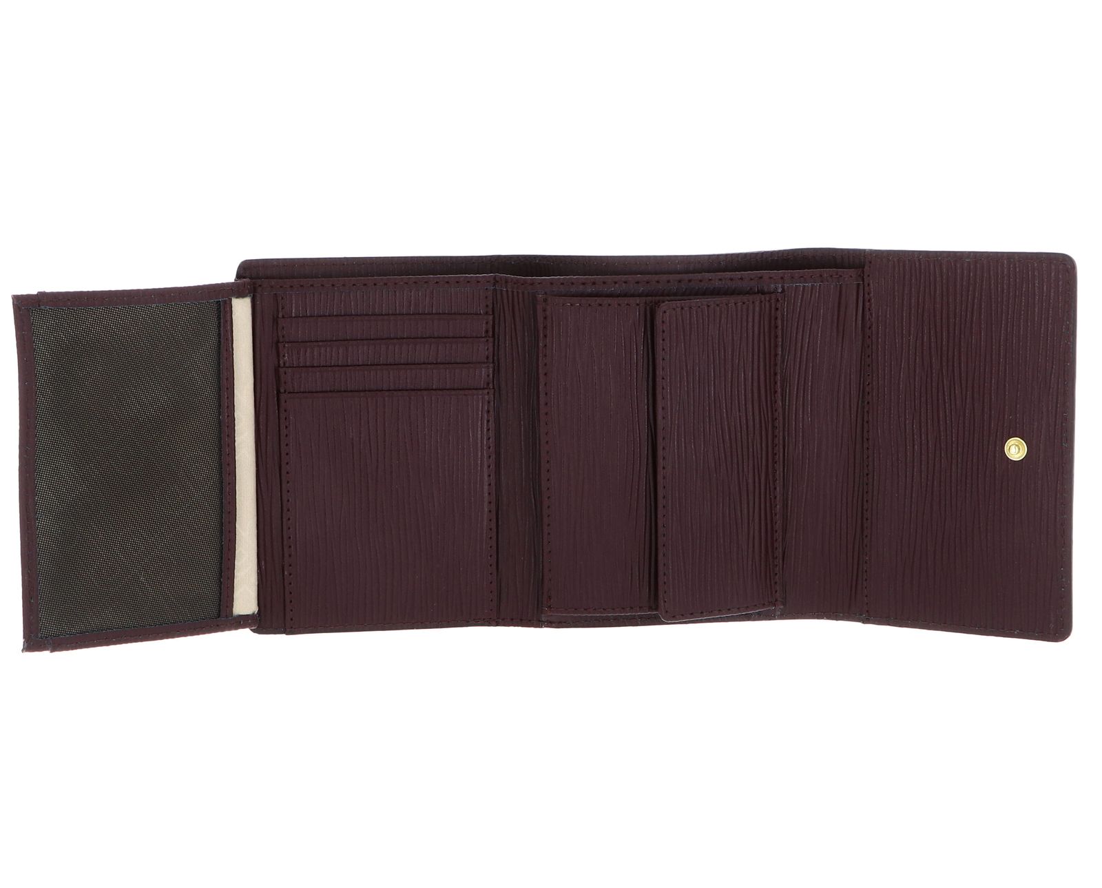 - Geldbörse wird mit Überschlagklappe und Druckknopf geschlossen