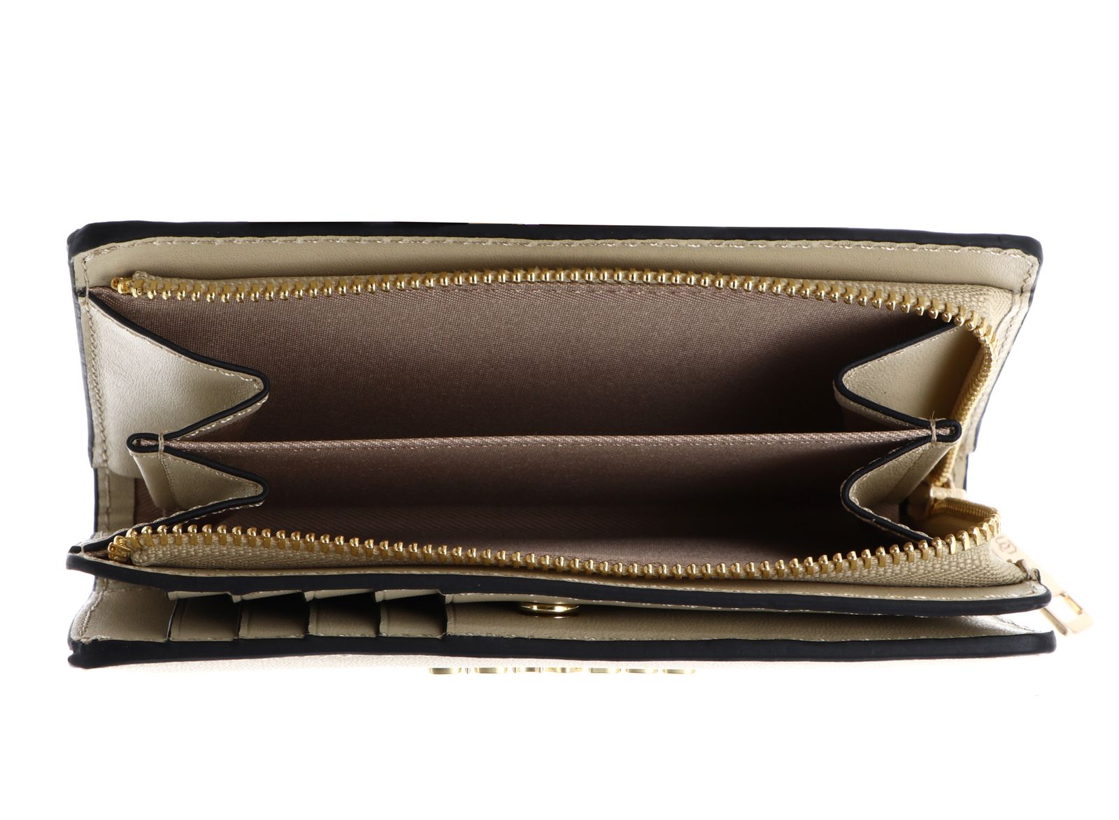 - 1 Zipperfach für Münzgeld / Kleingeld, unterteilt in 2 Fächer
