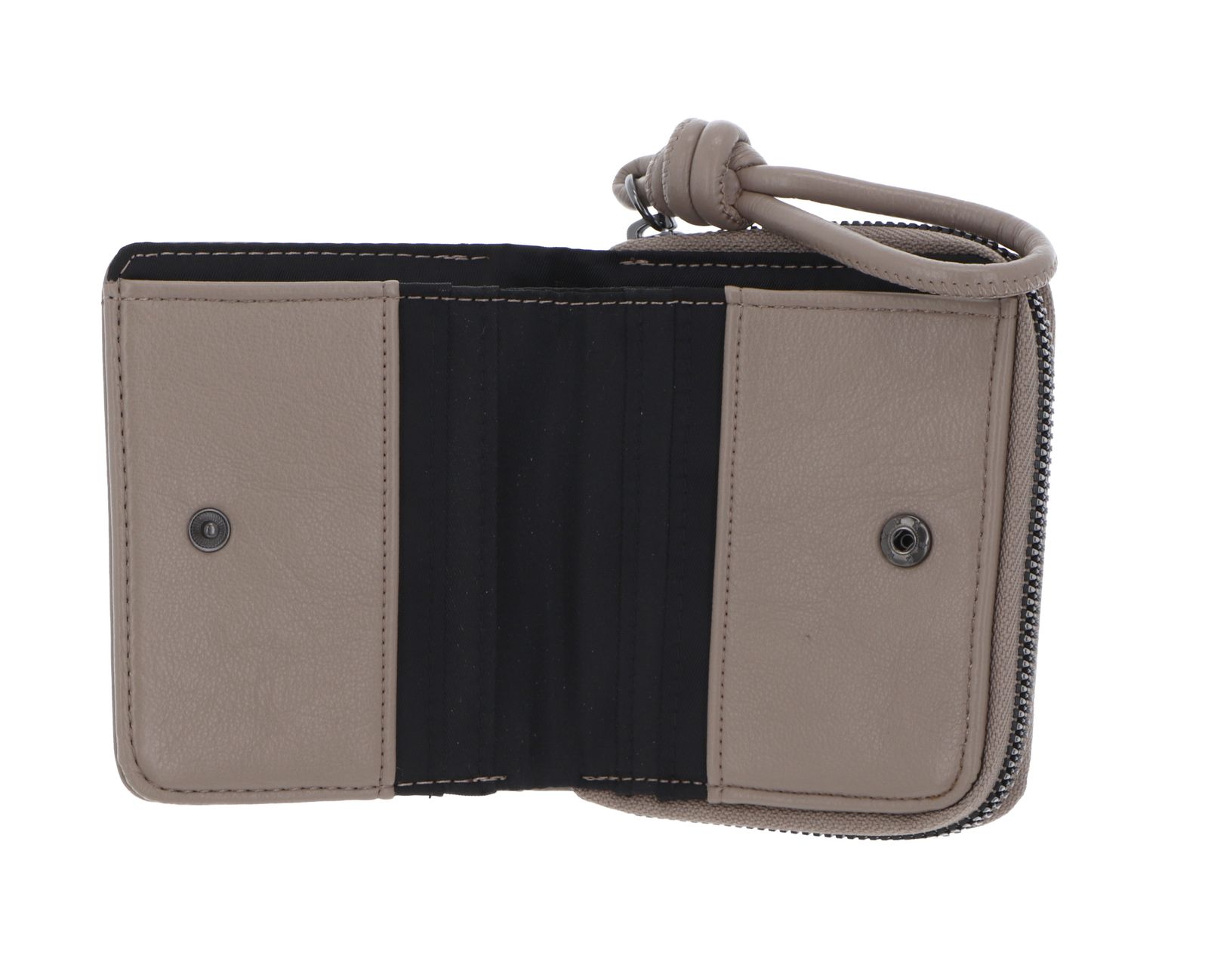 - Geldbörse wird mit Druckknopf geschlossen