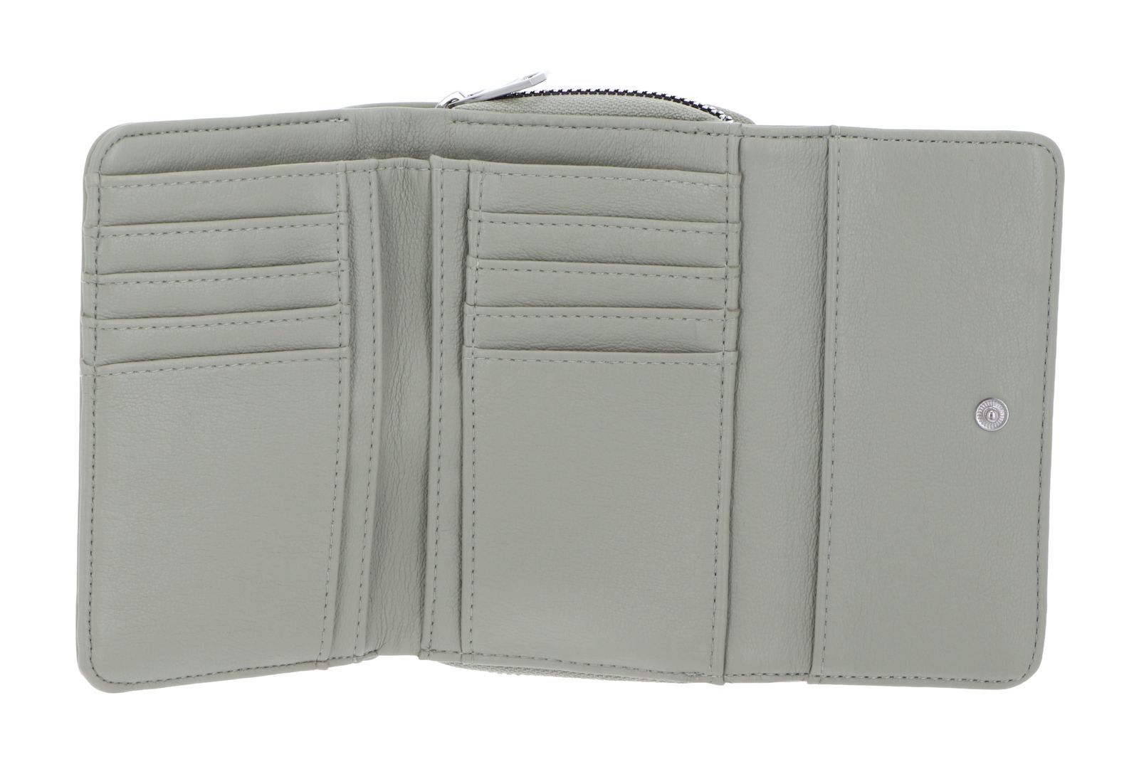 - Geldbörse wird mit Zipper, Überschlagklappe und Druckknopf geschlossen