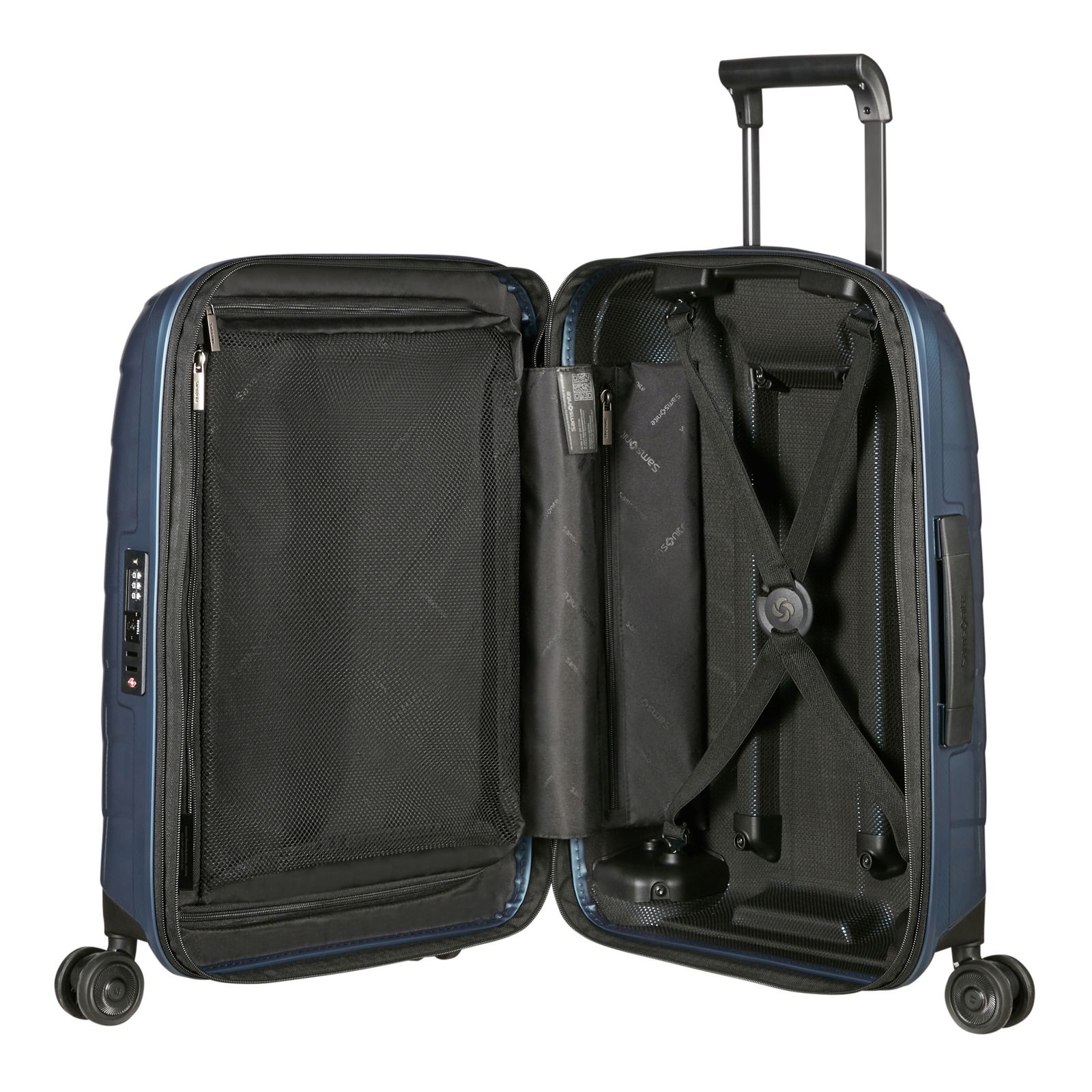 - Lieferumfang: Samsonite Trolley mit Etikett, 4 x Namensschild, 1 x Kompressionsriemen