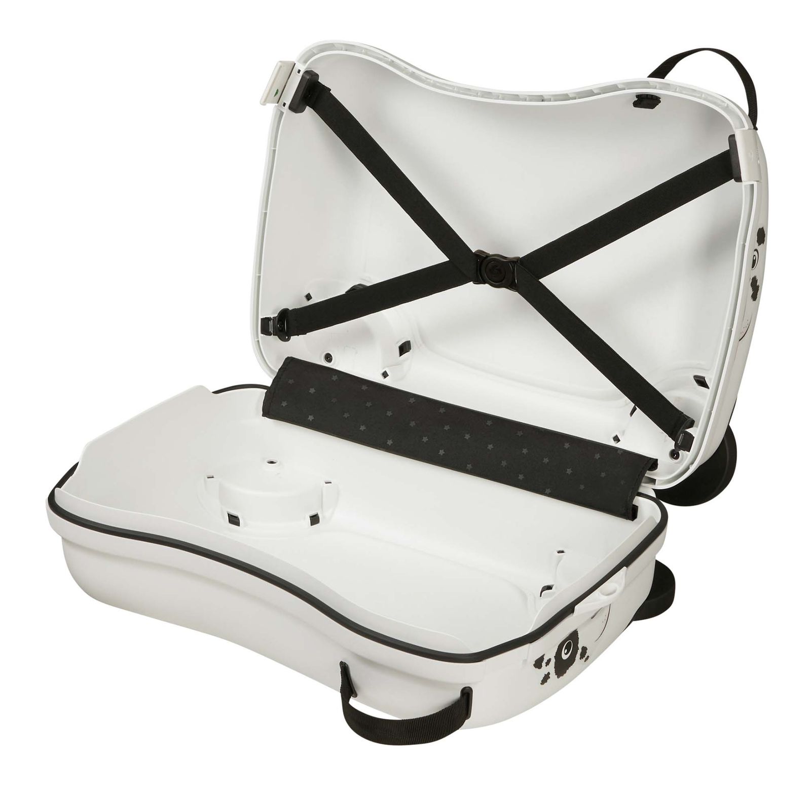 Im geräumigen Hauptfach dieses Samsonite Trolleys kommen all Ihre Habseligkeiten problemlos unter. Dank der Kompressionsriemen sind Ihre Habseligkeiten auch bei Turbulenzen gesichert. Der Trolley im auffälligen Puppy-Look macht einiges her und bringt direkt gute Stimmung mit auf Reisen. Dank der Mitfahrfunktion wird die Mobilität erleichtert, so wird dieser Dream2Go Ride - on Suitcase auch nicht mehr wegzudenken sein! Überzeugen Sie sich selbst von diesem tollen Reisebegleiter!