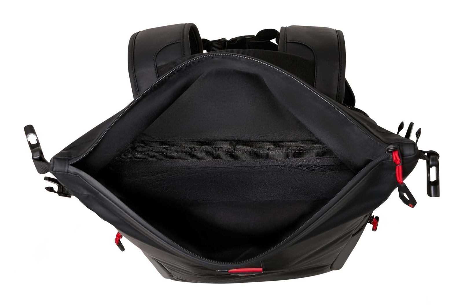 - Rucksack wird mit wasserabweisendem Zipper, Rollverschluss und stufenlos verstellbarem Clipverschluss geschlossen