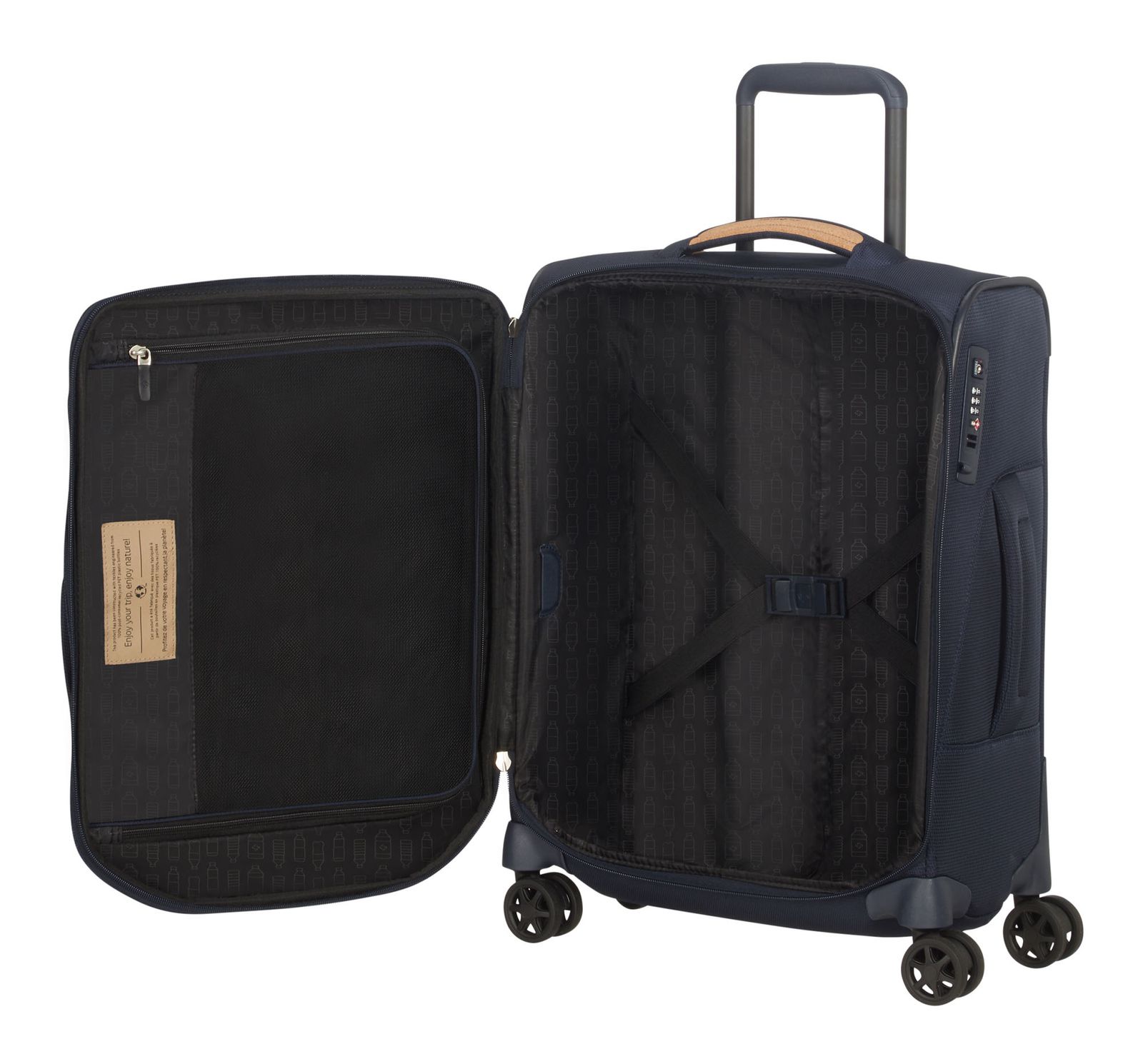 Auf die nächste Reise können Sie sich mit diesem Samsonite Trolley umso mehr freuen! Dank des leichten Gewichts und den verstärkten Kanten, hält dieser Reisebegleiter allem stand. Ebenso sorgen der Kompressionsriemen und die Trennwand auch bei Turbulenzen für den optimalen Halt Ihrer Kleidung. Dieser Spark Sng Eco Spinner 55 / 20 in Größe S aus dem Hause Samsonite lässt sich auf der linken Seite mittels selbst angebrachtem Namensschild personalisierten. Dank eines TSA-Schlosses und einem Stahlseil sind Ihre Habseligkeiten sicher für die Reise verstaut. So wird dieser Spark Sng Eco Spinner 55 / 20 S künftig bei Ihren Abenteuern nicht mehr wegzudenken sein!