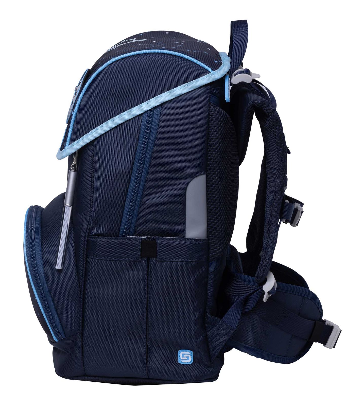 - Schulranzen mit Etikett und Deckel, Beckenflosse mit Hüftgurt