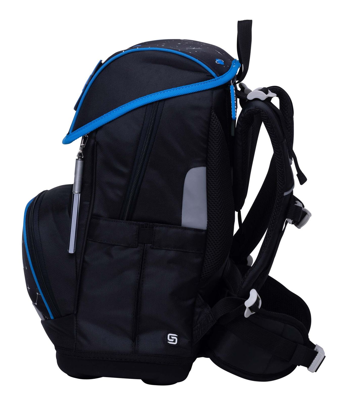 - Schulranzen mit Etikett und Deckel, Beckenflosse mit Hüftgurt