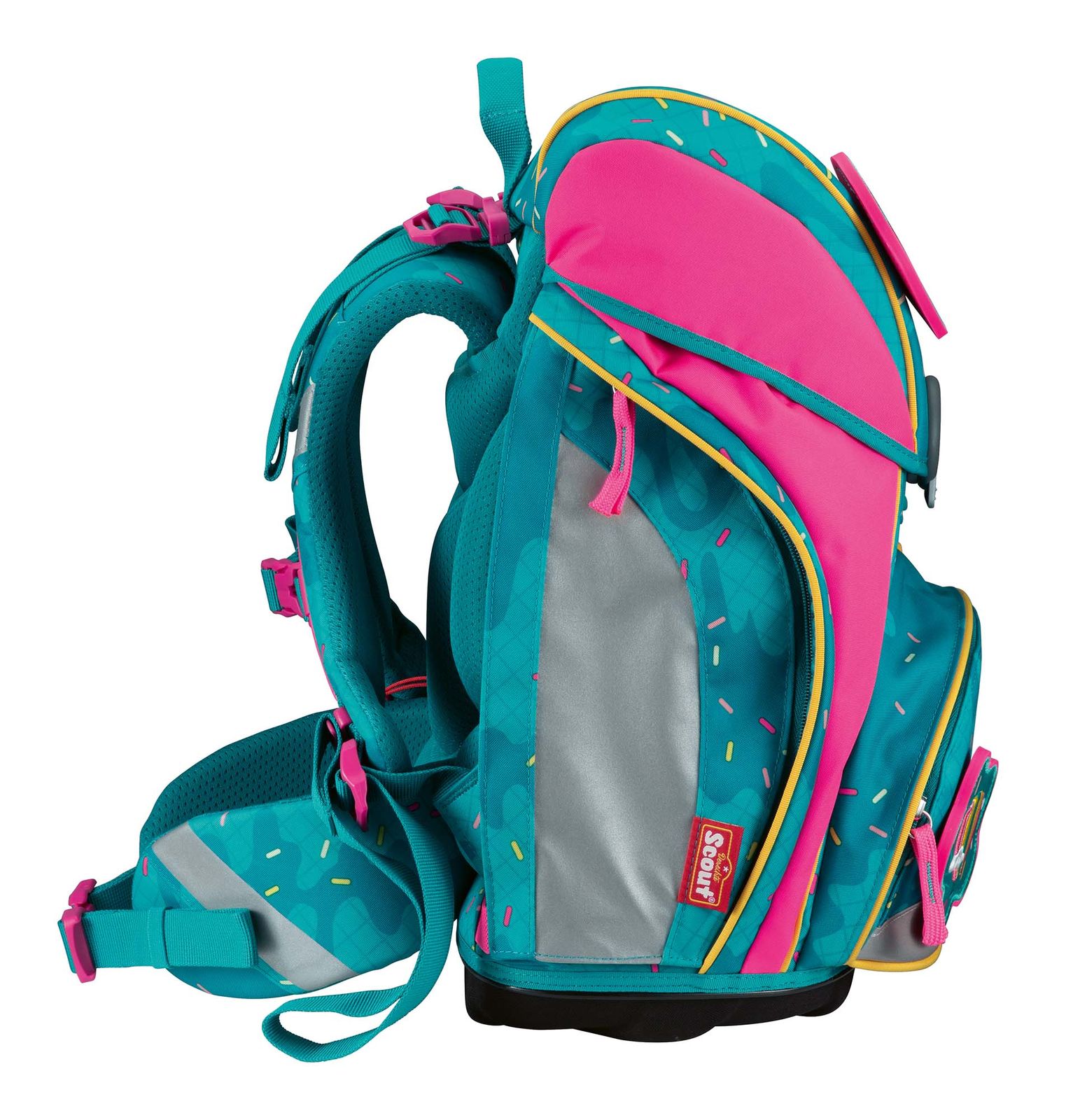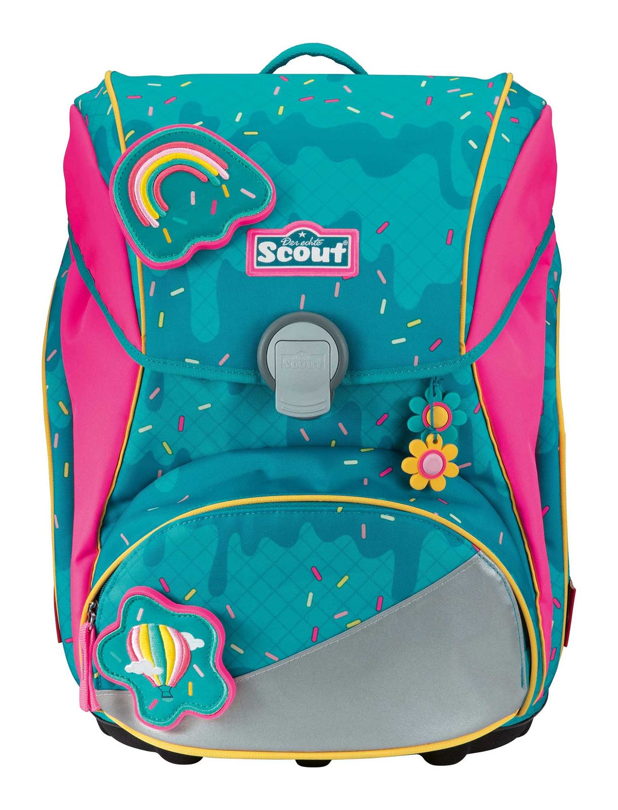 - Lieferumfang: Scout Schulranzen mit Etikett, 1 x Stundenplan, 1 x Namensschild, 1 x Beckenflosse mit Hüftgurt, 2 x Funny Snaps Move, 1 x Anhänger, 1 x Sichtfach, 1 x Schlüsselring