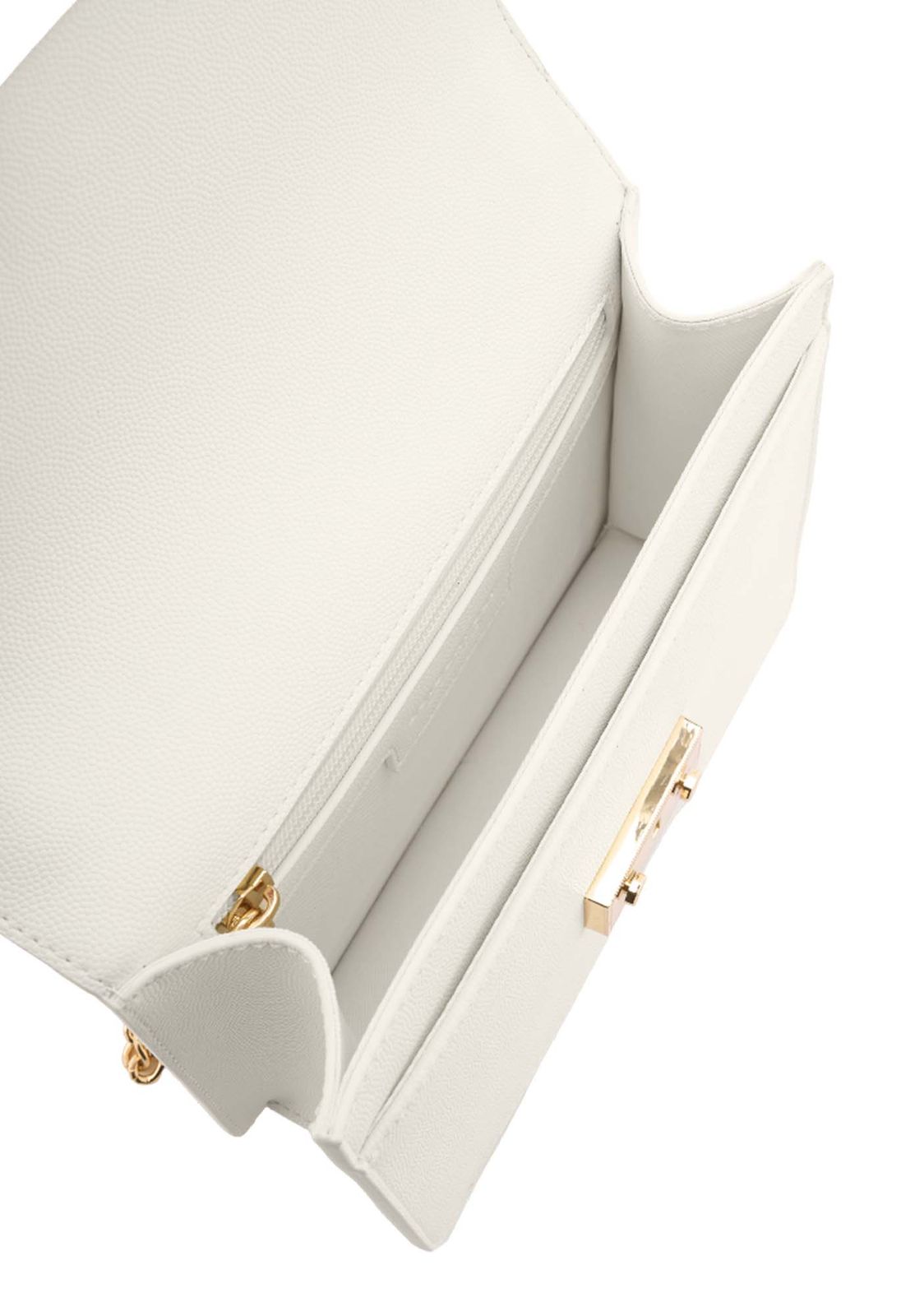 - Abendtasche wird mit Überschlagklappe und Schnappverschluss geschlossen