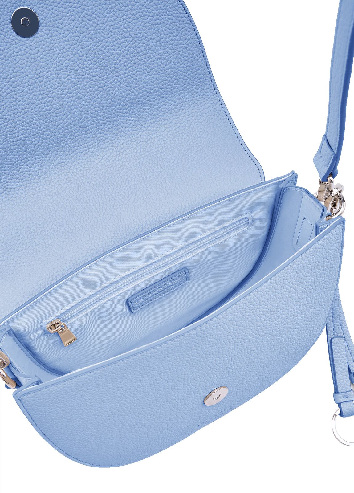 - Umhängetasche wird mit Überschlagklappe und Magnetverschluss geschlossen