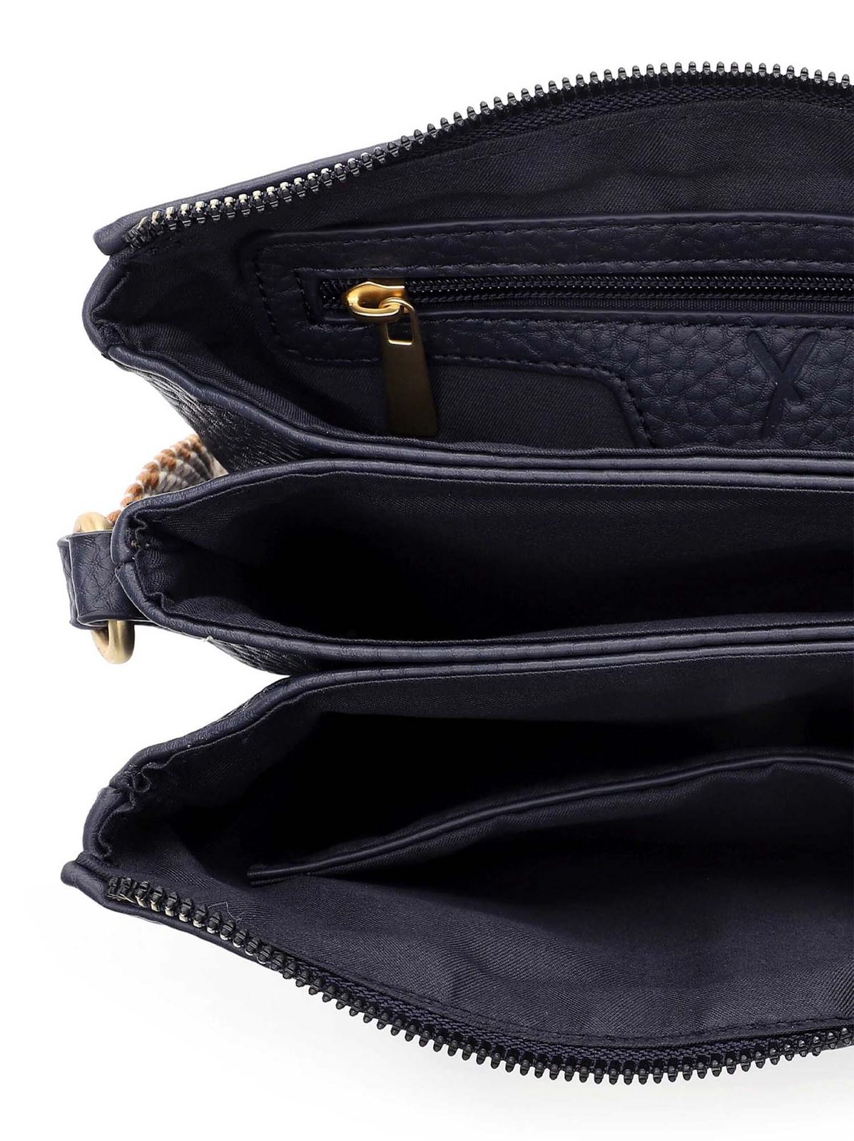 - Umhängetasche wird mit Zipper geschlossen