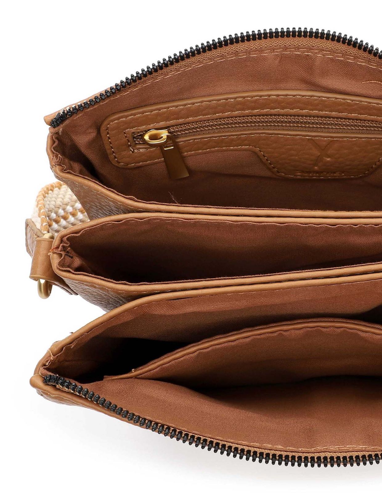 - Umhängetasche wird mit Zipper geschlossen