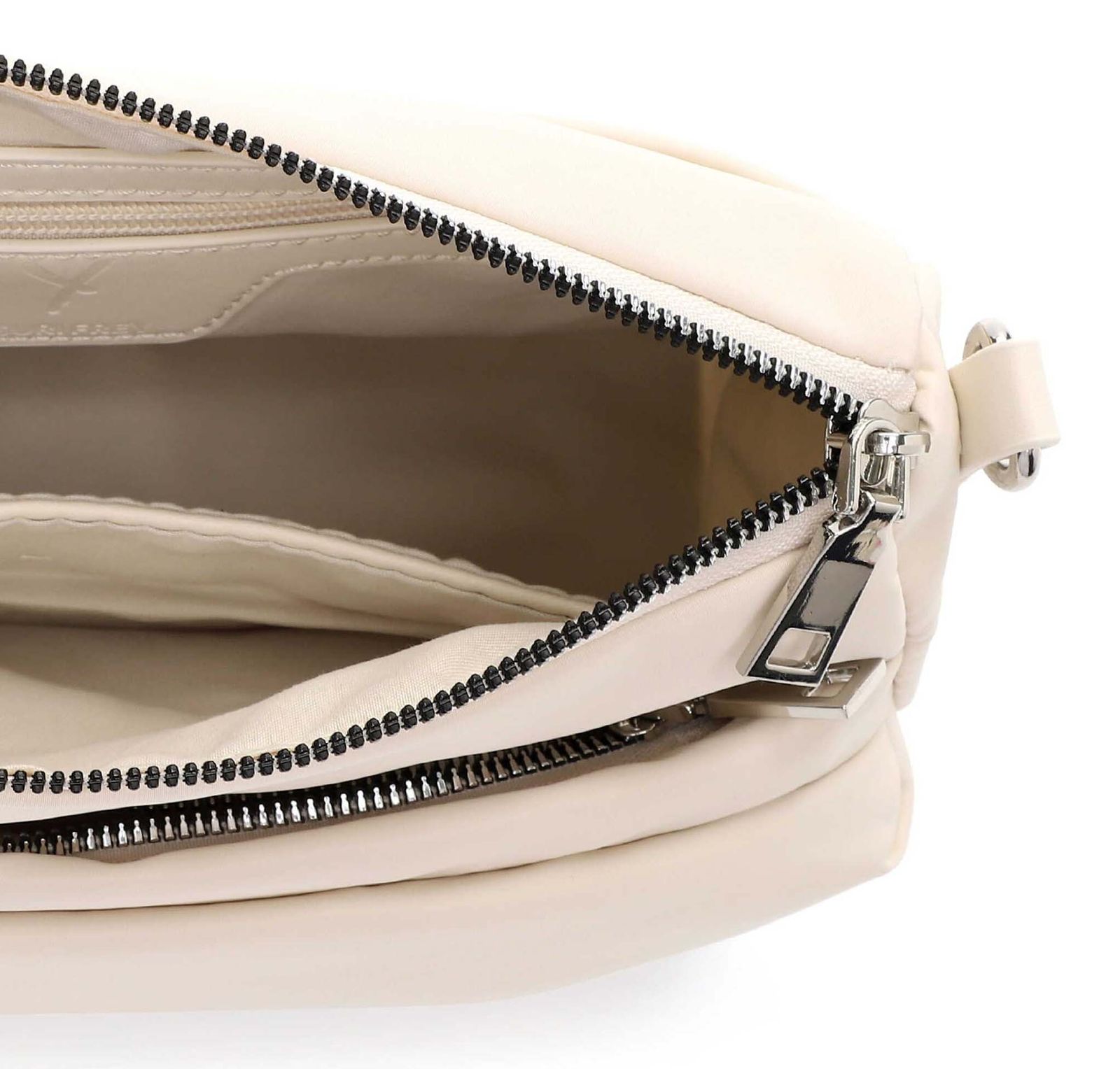 - Umhängetasche wird mit Zipper geschlossen
