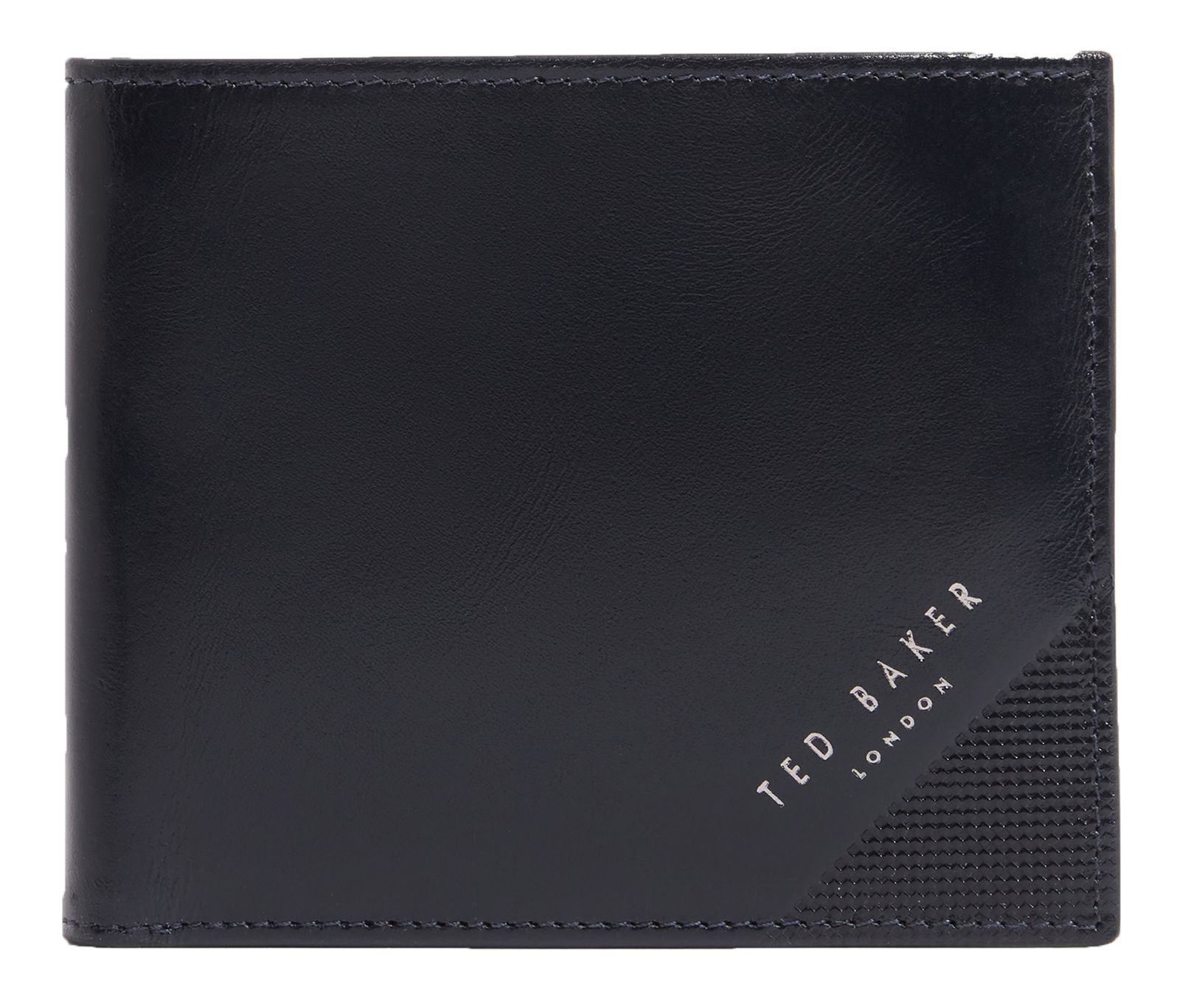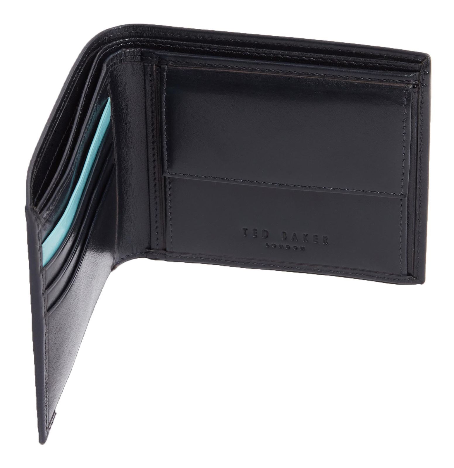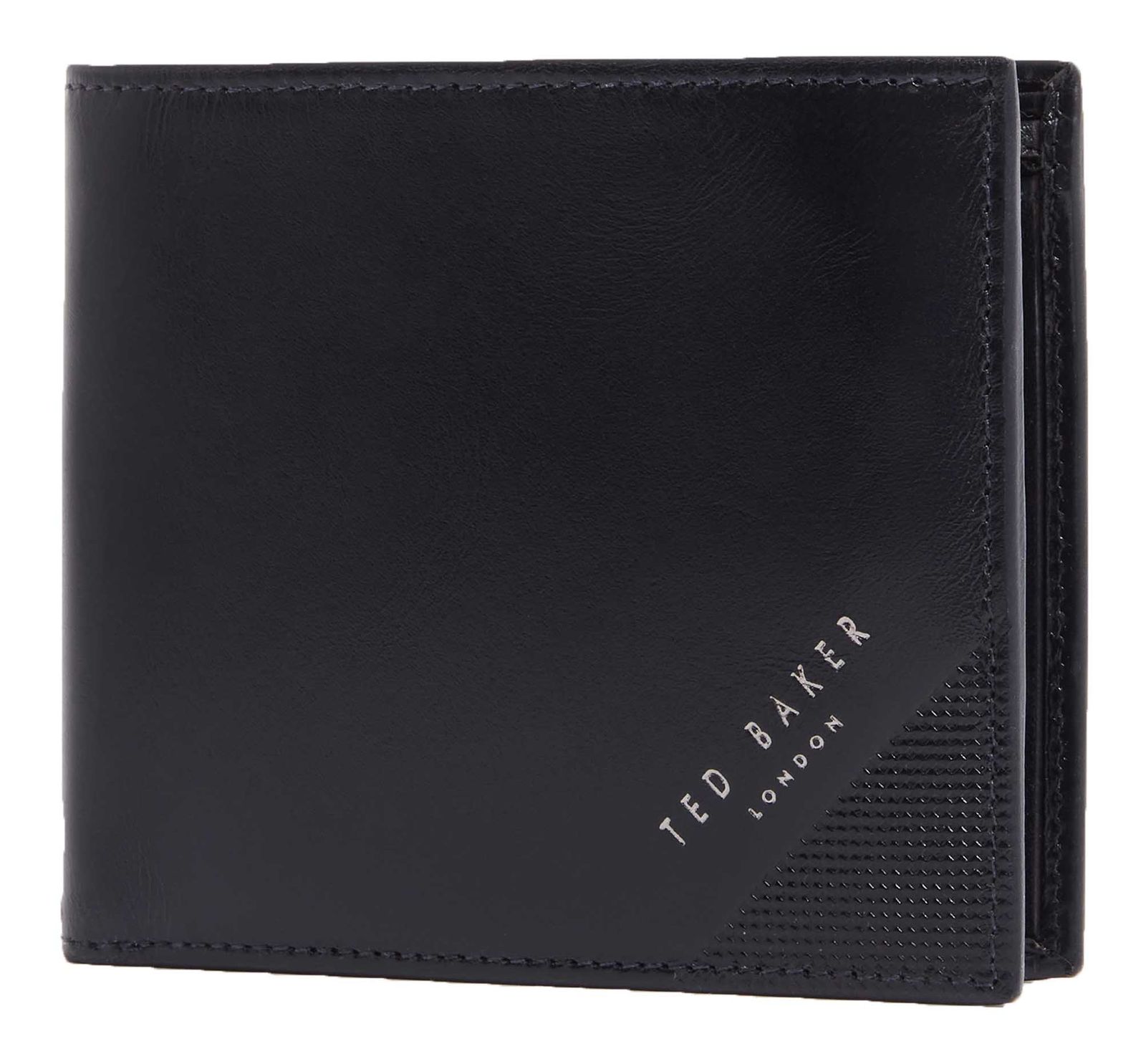 Embossed Corner Leather Bifold Coin Wallet Navy
