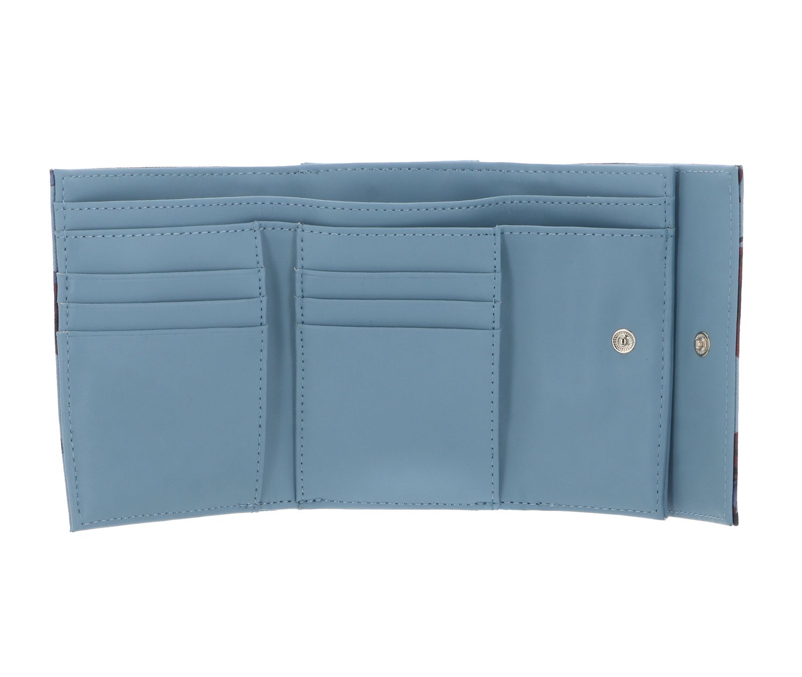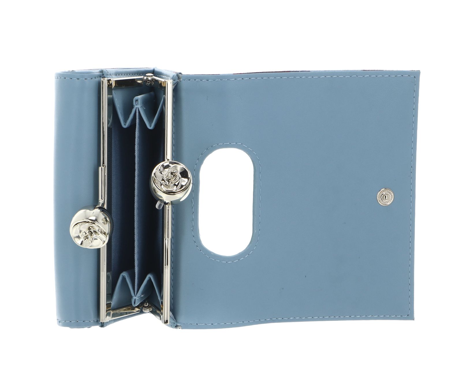 - Geldbörse wird mit Überschlagklappe, Druckknopf und Bügelverschluss geschlossen