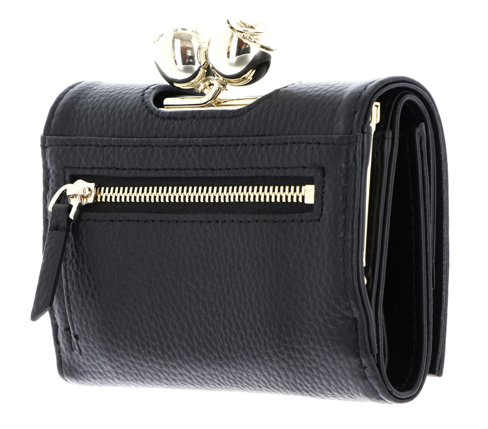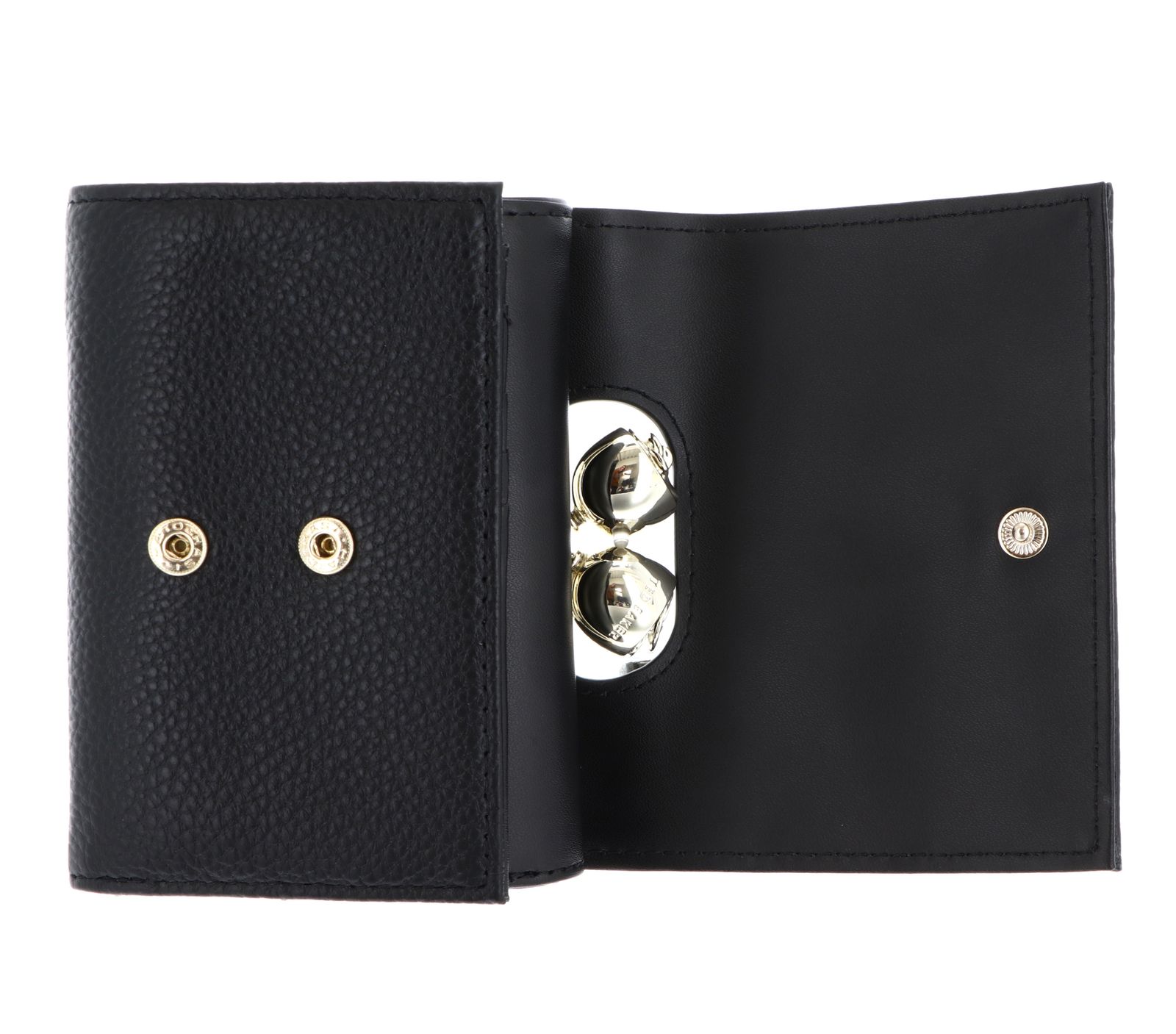 - Geldbörse wird mit Bügelverschluss, Überschlagklappe und verstellbarem Druckknopf geschlossen
