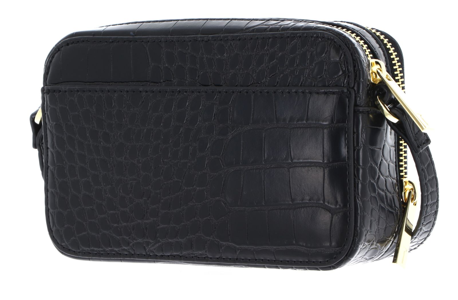 Stina Double Zip Croc Effect Mini Camera Bag Black
