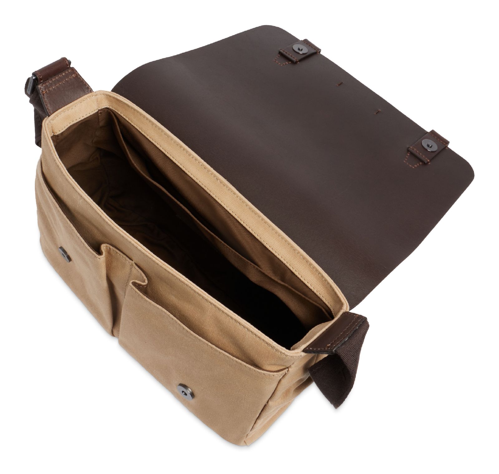 - Umhängetasche wird mit Überschlagklappe und Magnetverschluss geschlossen