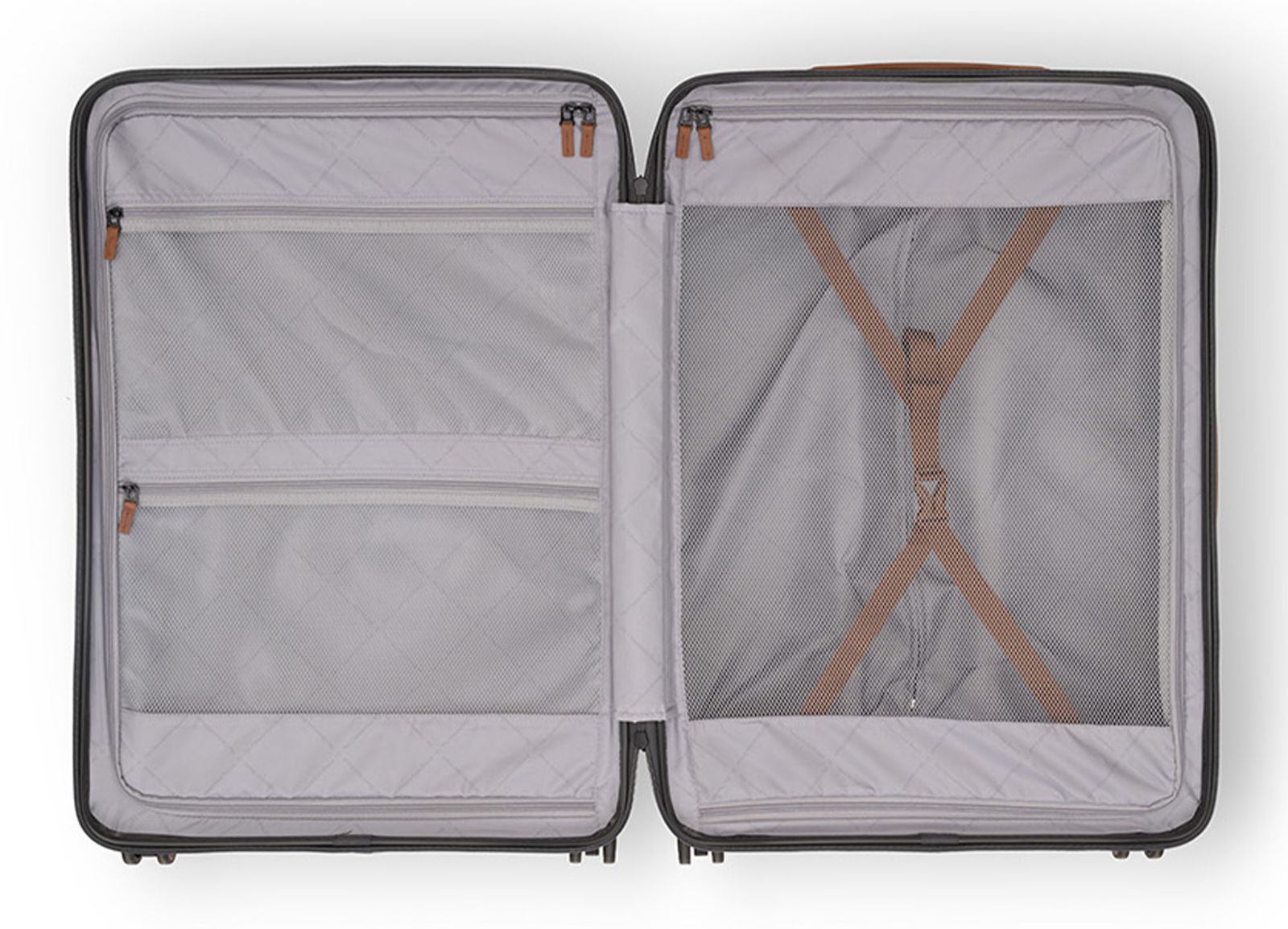 - Auf der linken Trennwand 2 Netz-Zipperfächer